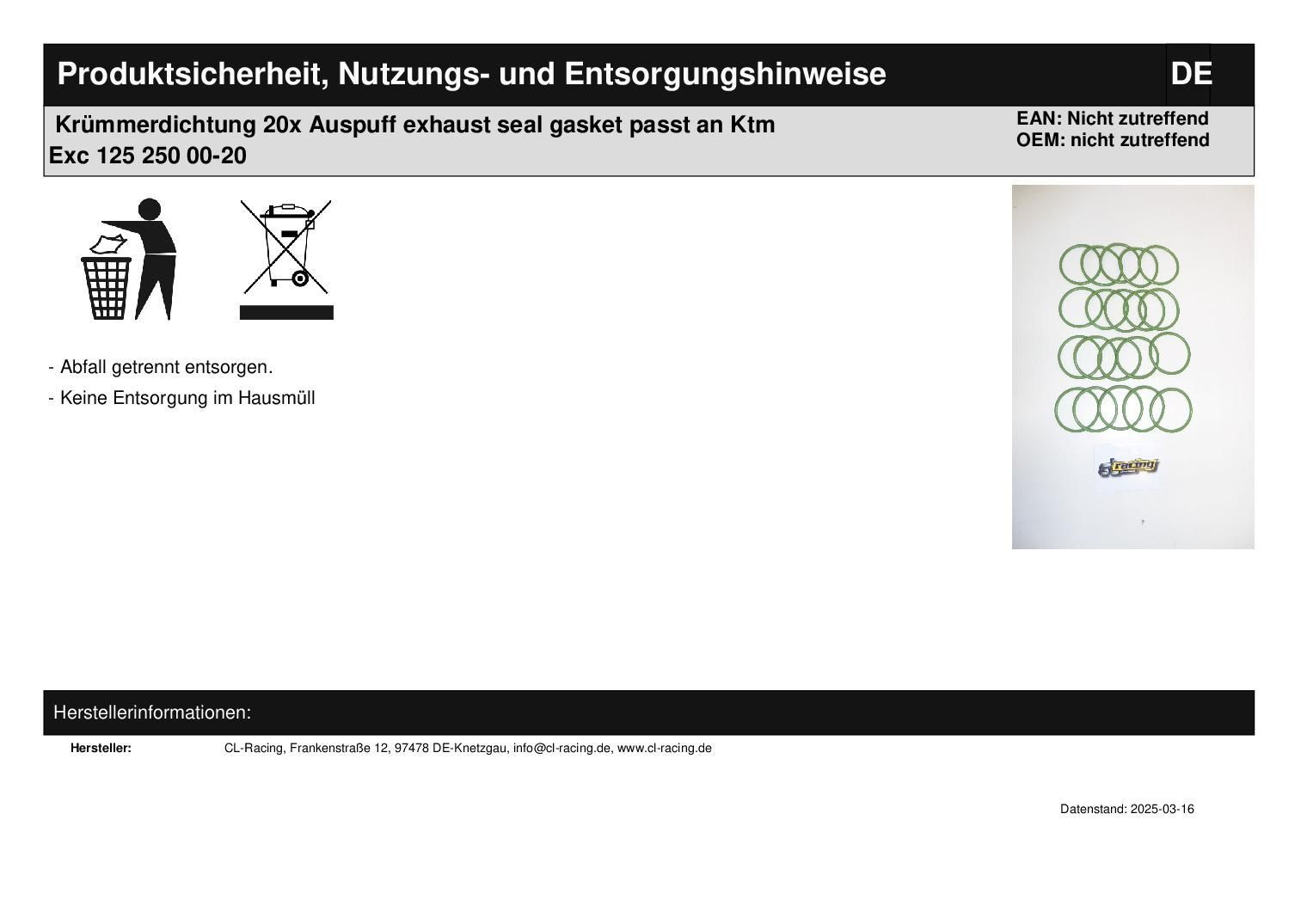 Krümmerdichtung 20x Auspuff exhaust seal gasket passt an Ktm Exc 125 250 00-20