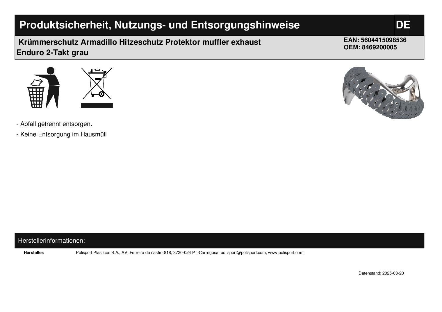 Polisport Krümmerschutz Armadillo Hitzeschutz Protektor muffler exhaust Enduro 2-Takt grau