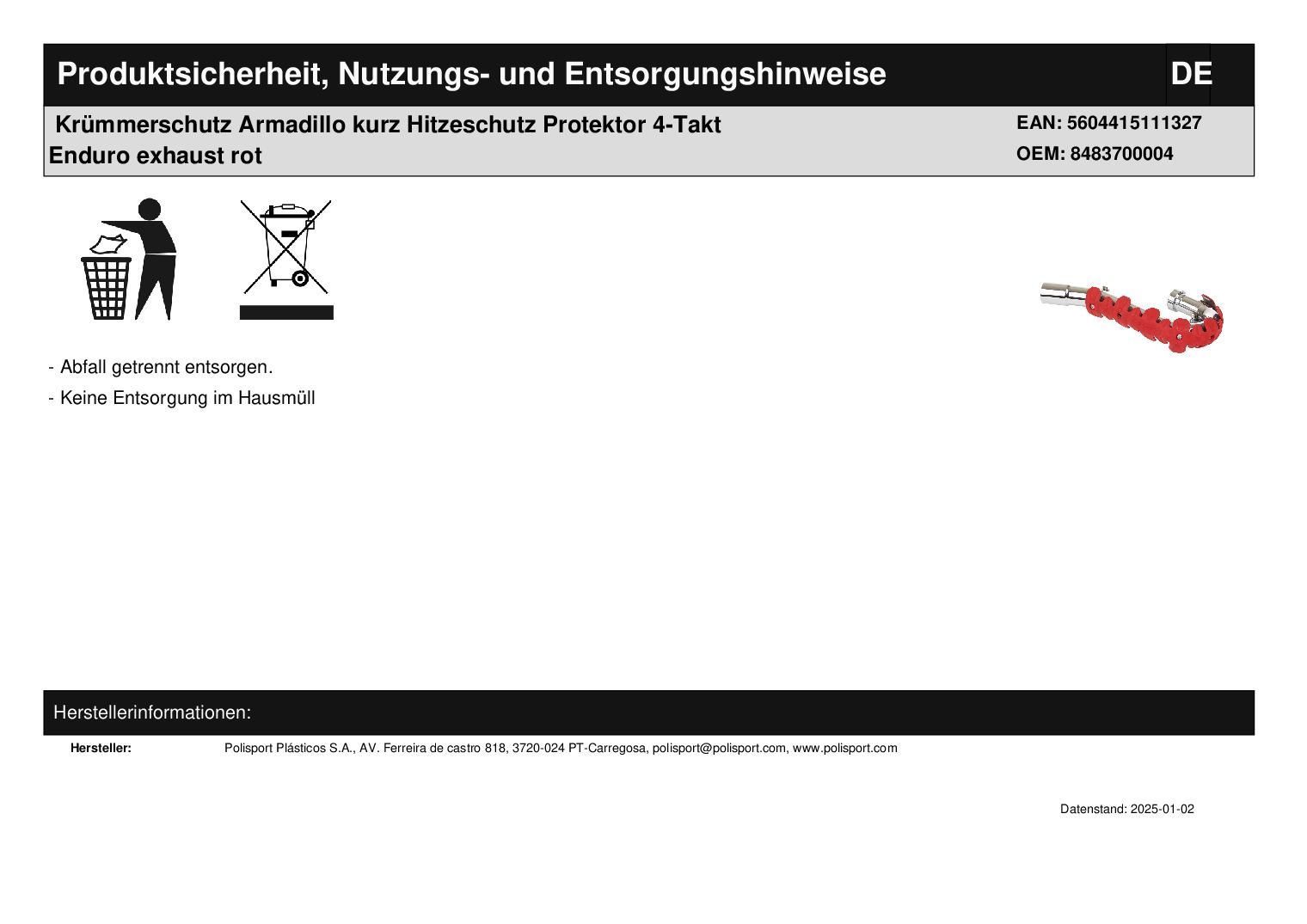 Polisport Krümmerschutz Armadillo kurz Hitzeschutz Protektor 4-Takt Enduro exhaust rot