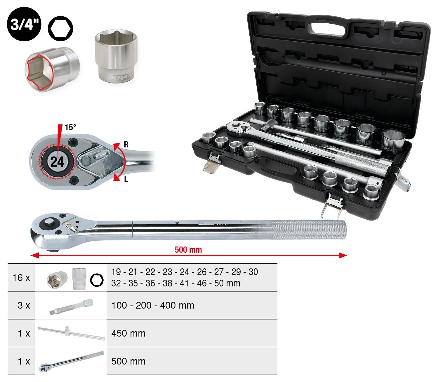 KS TOOLS KS TOOLS 3/4" Steckschlüssel-Satz, 21-tlg 6-kant