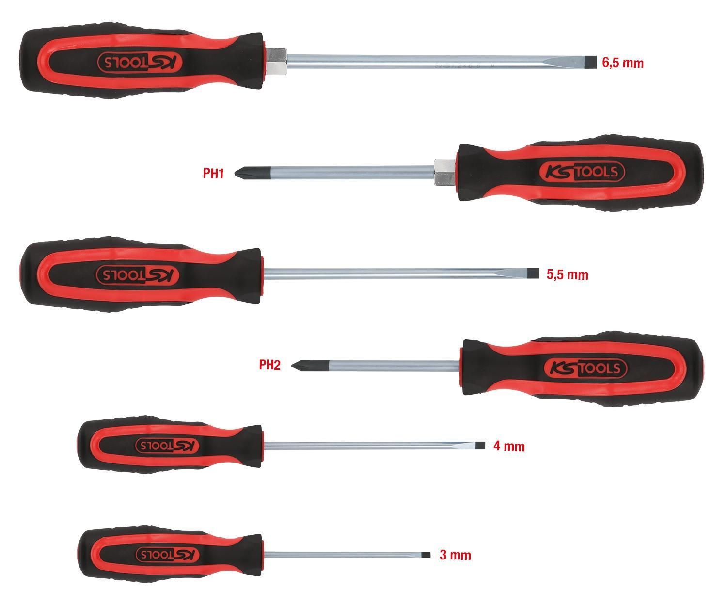 KS TOOLS KS TOOLS Ergotorqueplus Schraubendreher-Satz, 6-tlg Schlitz, PH
