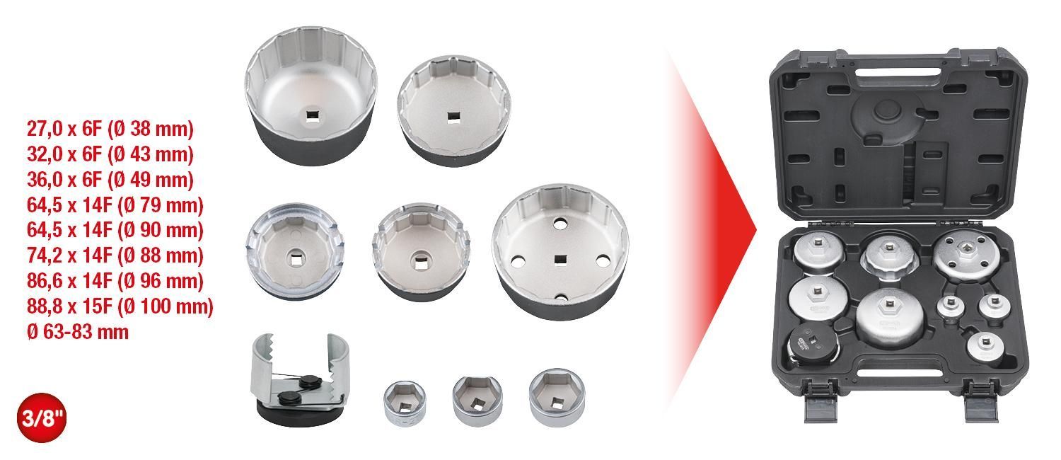 KS TOOLS KS TOOLS Öldienstschlüssel-Satz für Ölfilter- und Filtergehäusedeckel, 9-tlg