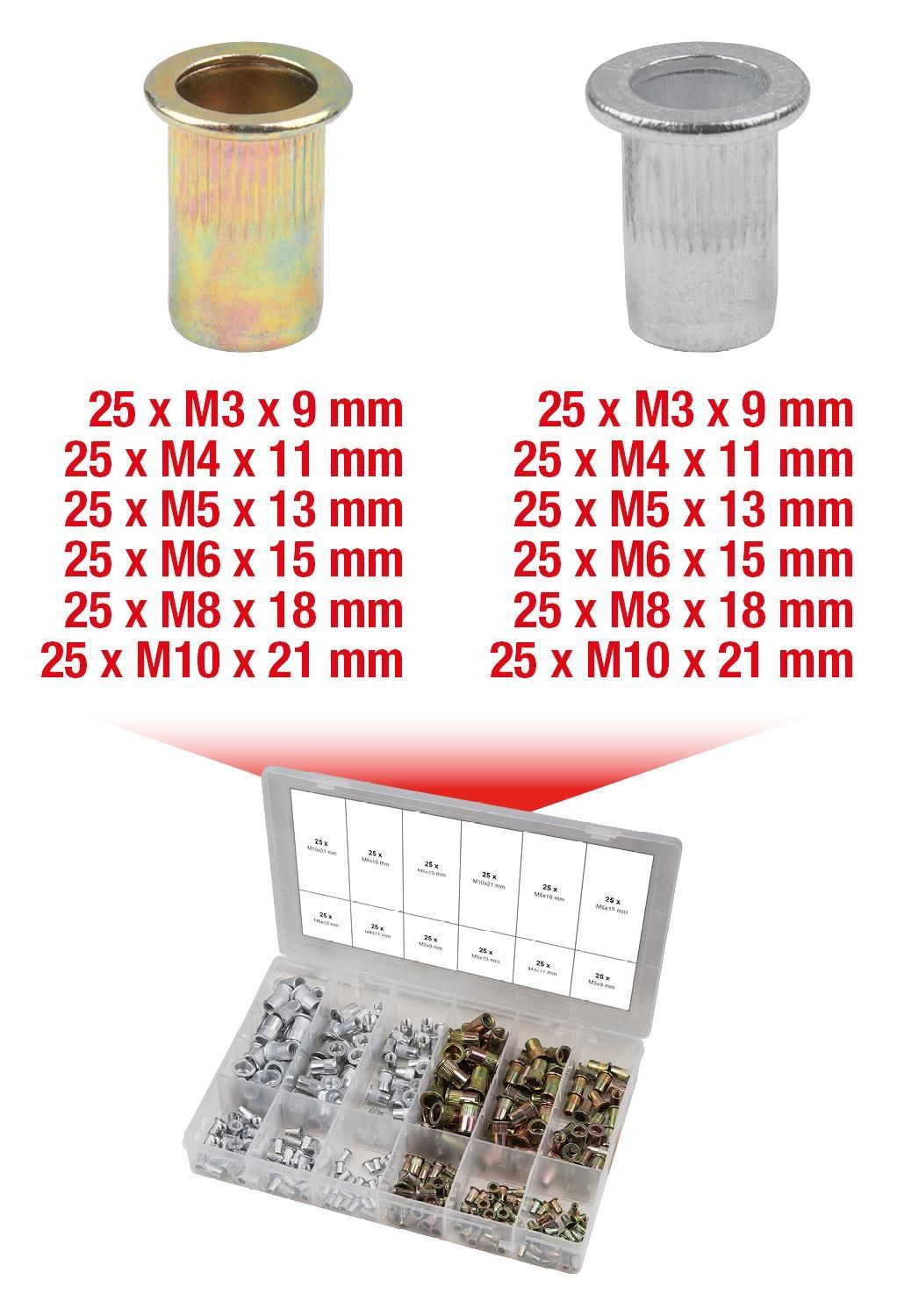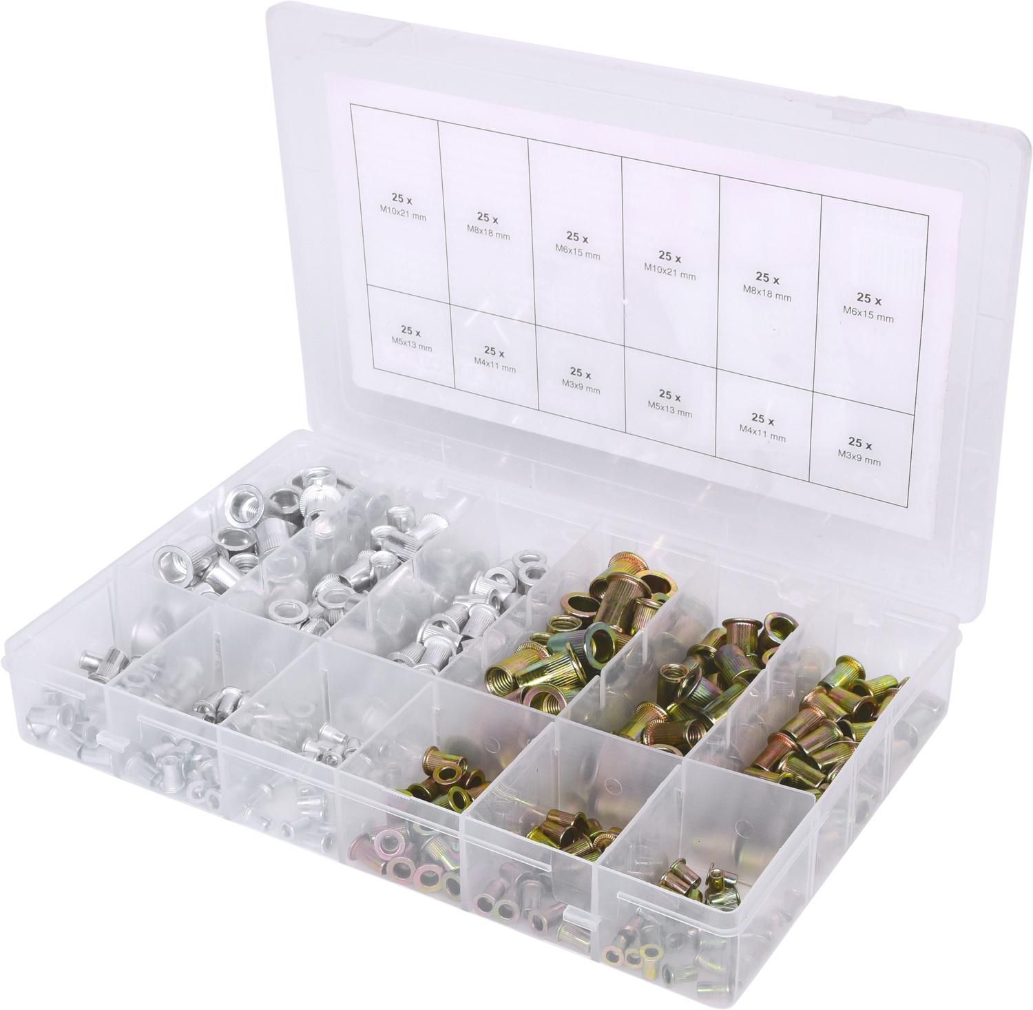 KS TOOLS KS TOOLS Sortiment Gewindenieten, Stahl und Aluminium, M3x9mm-M10x21mm, 300-tlg