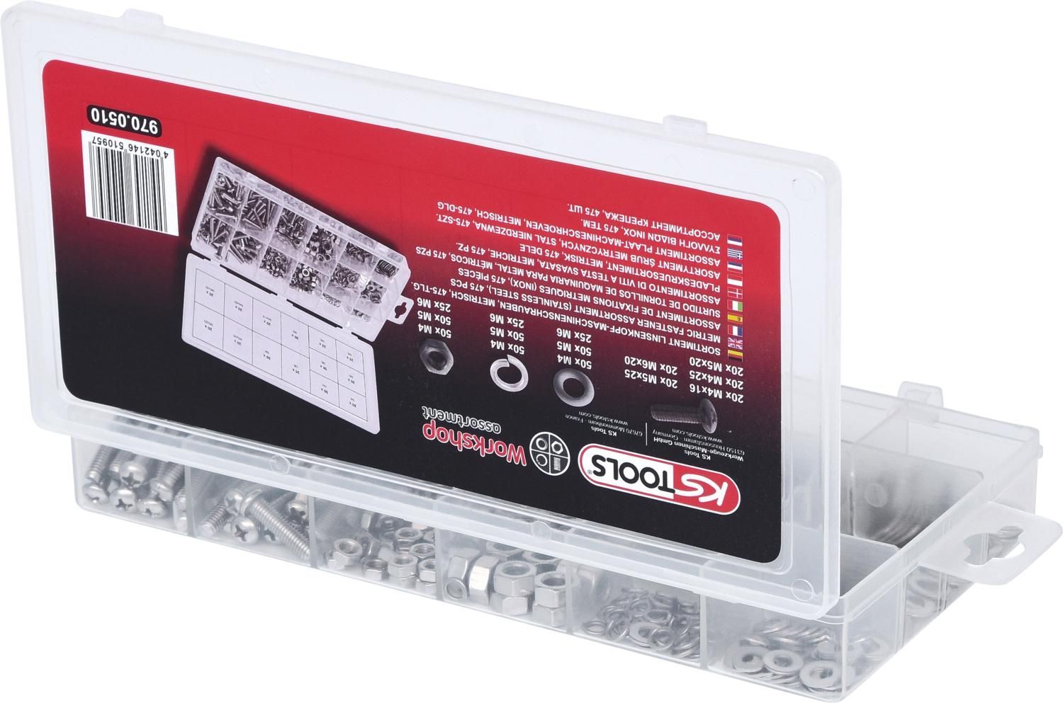 KS TOOLS KS TOOLS Sortiment Linsenkopf-Maschinenschrauben, metrisch, 475-tlg