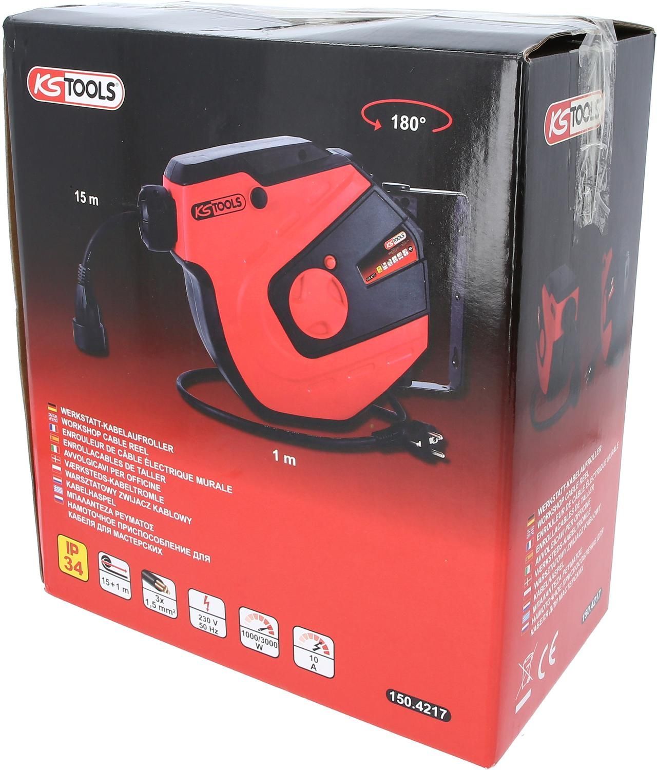 KS TOOLS KS TOOLS Werkstatt-Kabelaufroller, 15m, 1,5mm²
