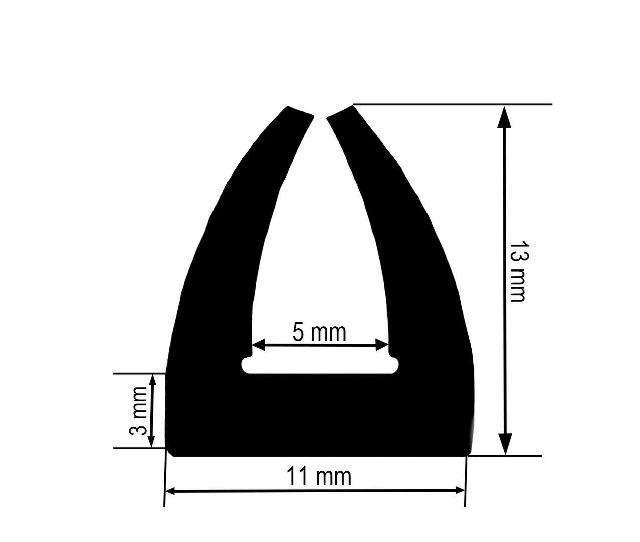 KS-TPE-5S Kantenschutzprofil schwarz TPE Klemmbereich 5 mm Maße 13x11 mm
