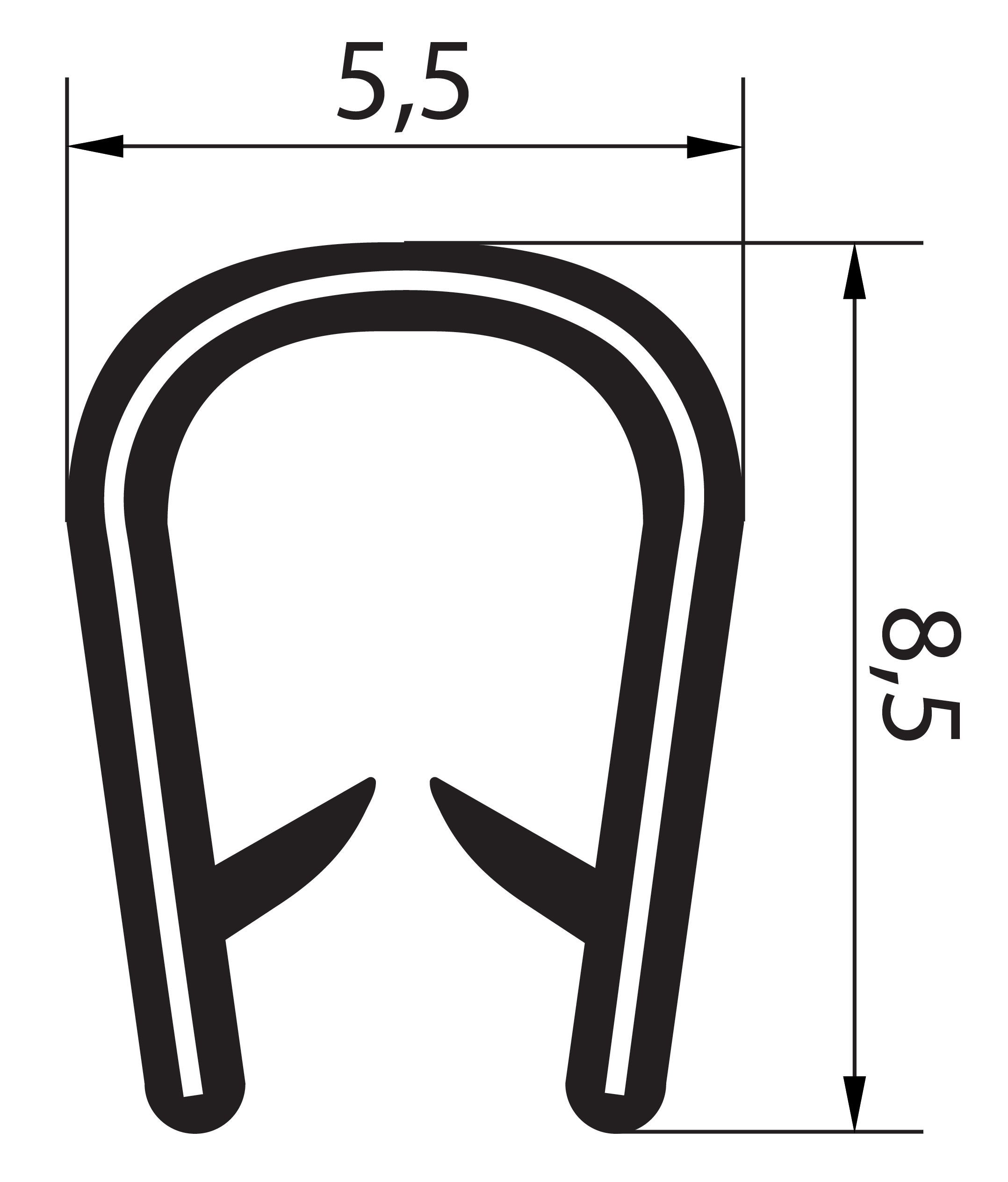 • SMI Dichtungsprofil Kantenschutz Profil mit Dichtung oben Gummi Schwarz