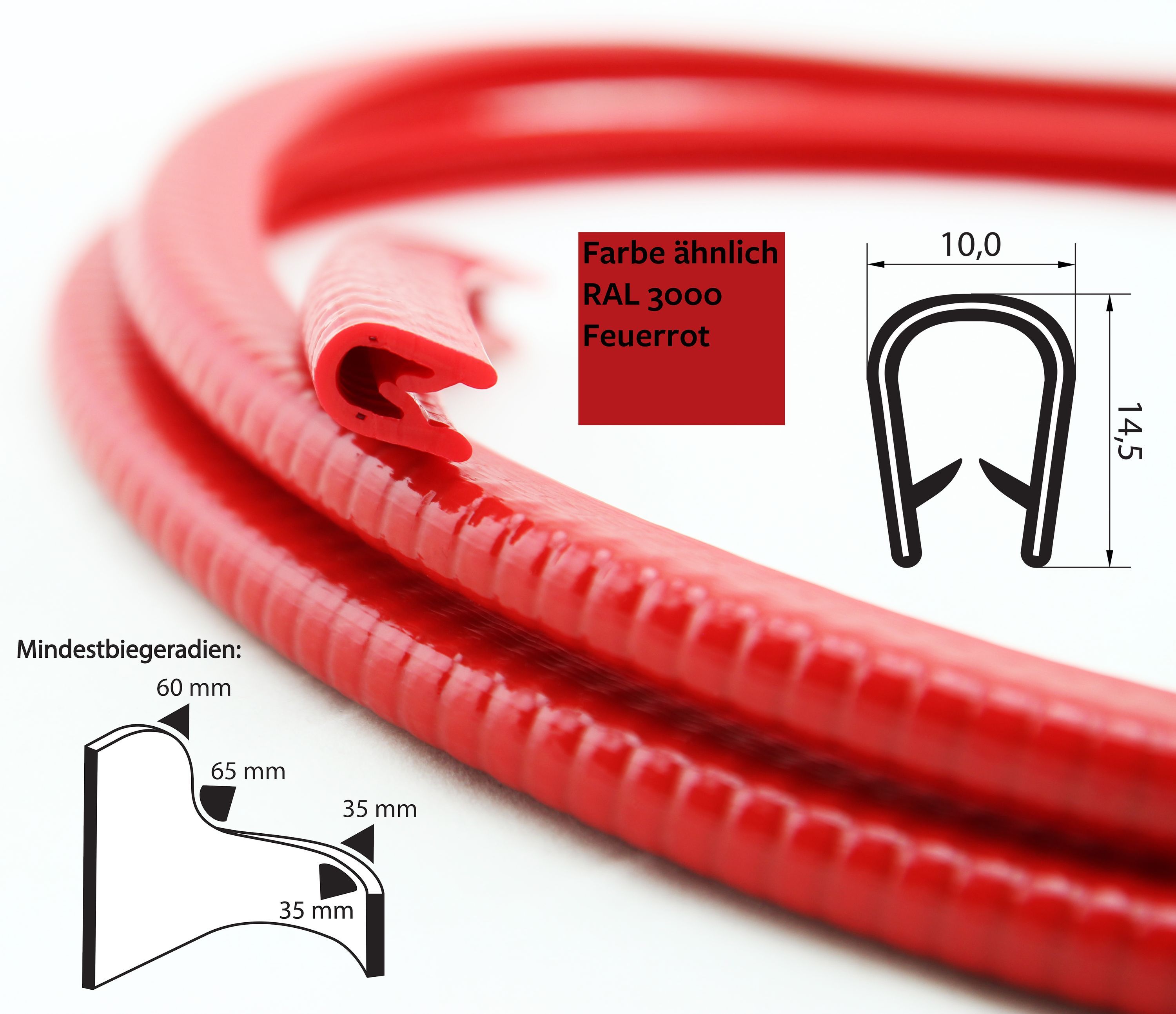 KS1-4RG Kantenschutzprofil Rot glänzend ähnlich RAL 3000 Klemmbereich 1-4 mm Maße 14,