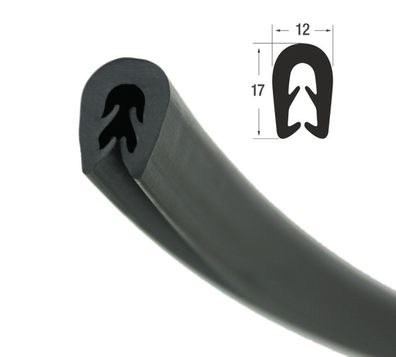 • KS-TPE3-5S Kantenschutzprofil schwarz TPE Klemmbereich 3-5 mm Maße 17x12 mm