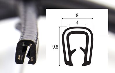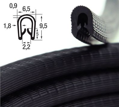 • KS1-2S Kantenschutzprofil schwarz glänzend Klemmbereich 1-2 mm Maße 9,5x6,5 mm