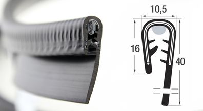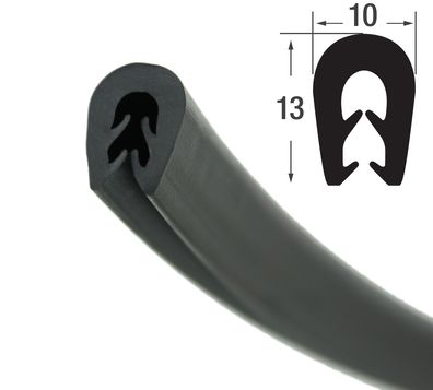 • KS-TPE1-2S Kantenschutzprofil schwarz TPE Klemmbereich 1-2,5 mm Maße 13x10 mm