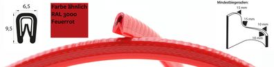 • KS1-2RG Kantenschutzprofil Rot glänzend ähnlich RAL3000 Klemmbereich 1-2 mm Maße 9,5x