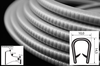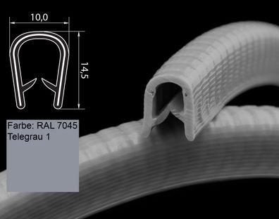 • KS1-4G Kantenschutzprofil Grau ähnlich RAL 7045 Klemmbereich 1-4 mm Maße 14,5x10 mm