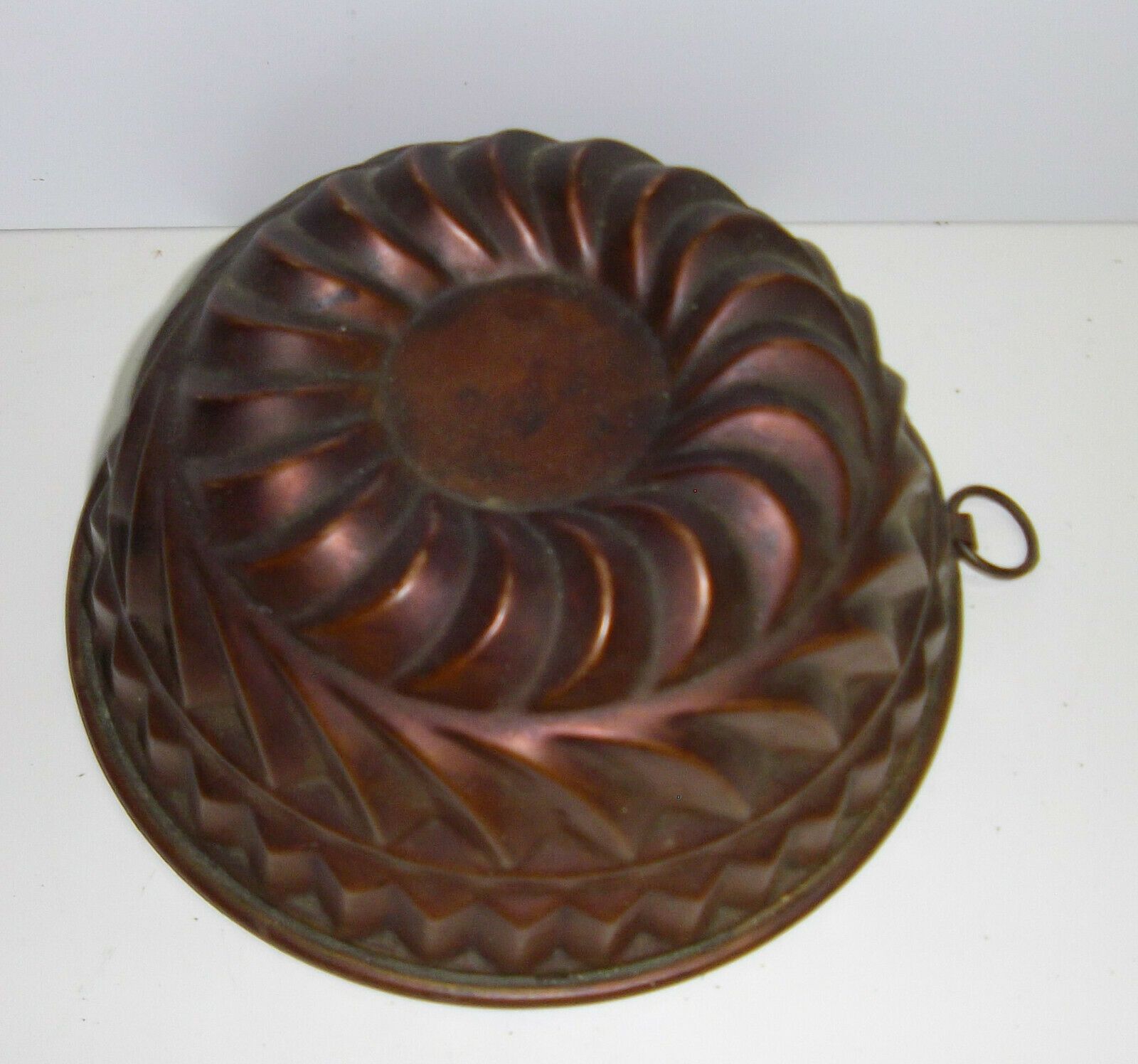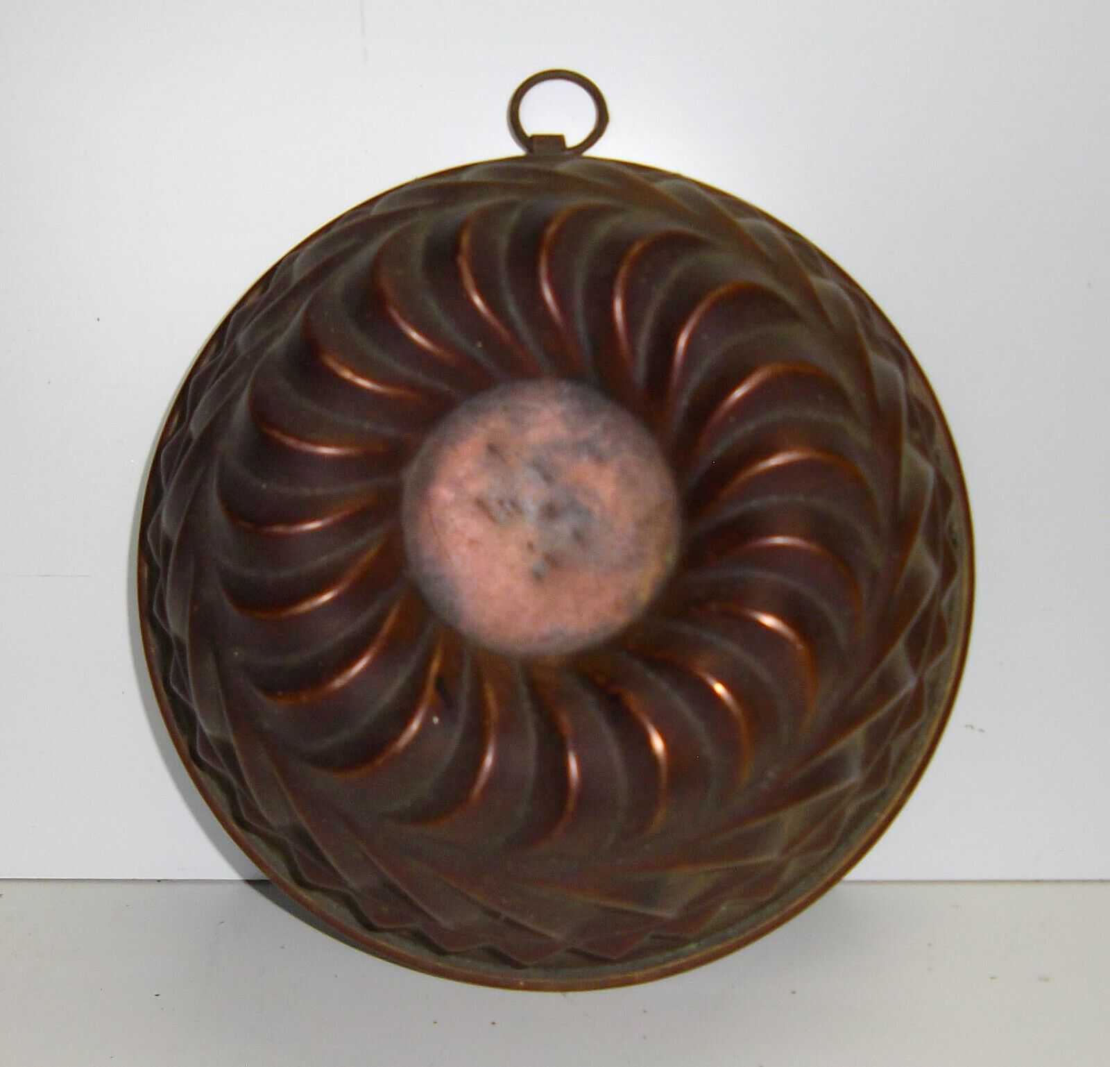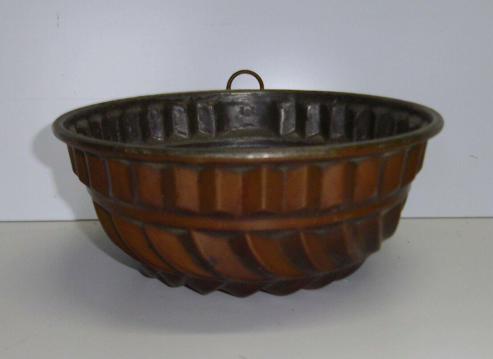 Kuchenform aus Kupfer um 1850. Hängeöse aus Messing. Innen verzinnt. Ungeputzt. Maße: H 7,5, Ø 18 cm. Sehr gut erhalten! Antikes am Deich - Inh: Oliver Kipp-Trense