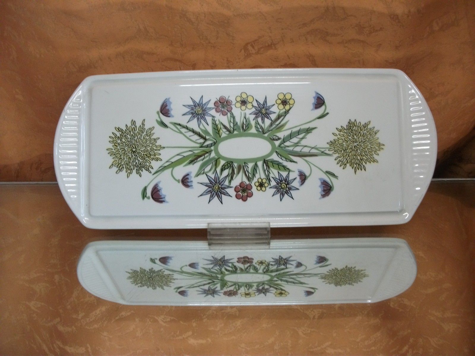 Kuchenplatte eckig Keramik leicht cremig ab 1950