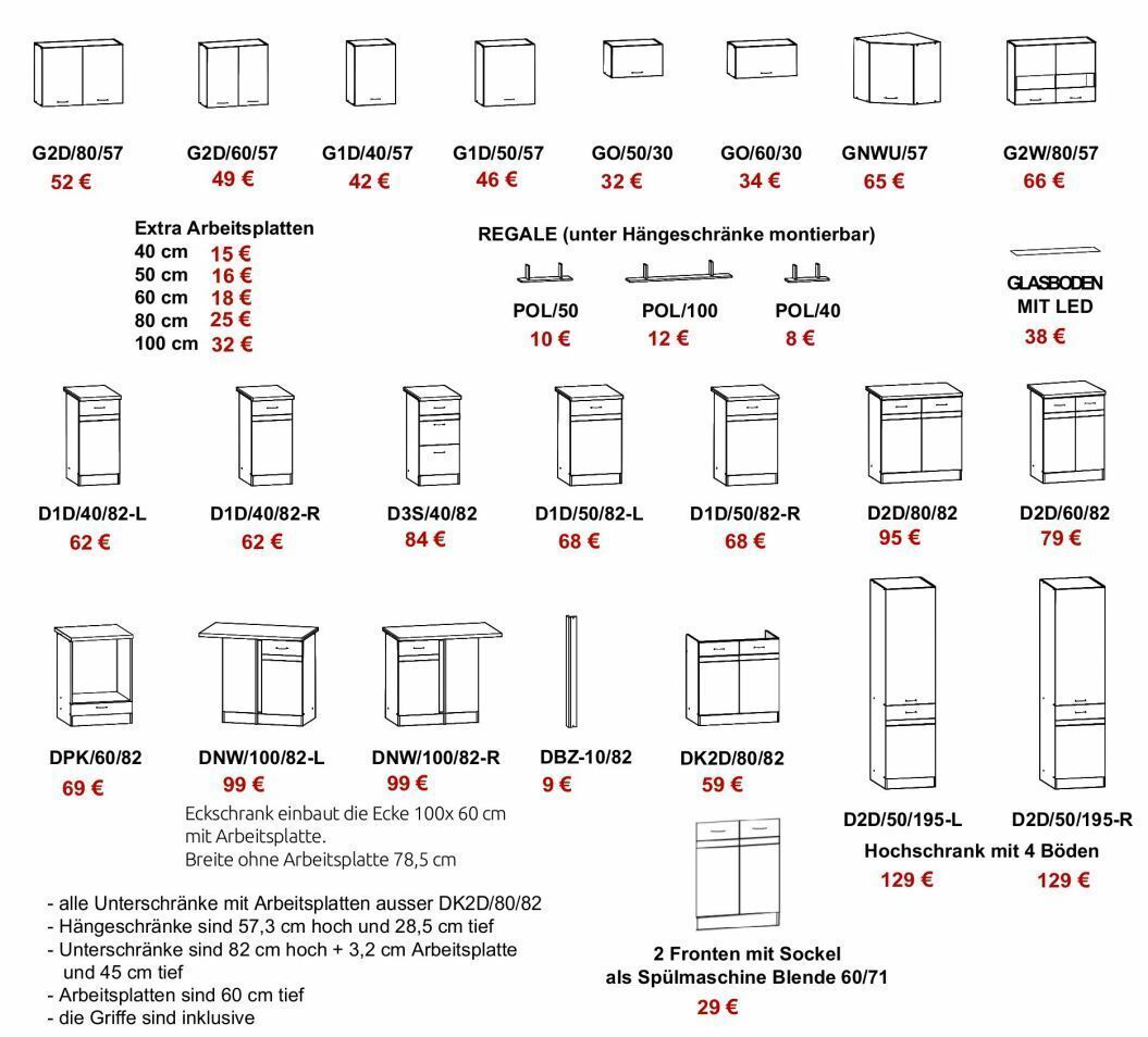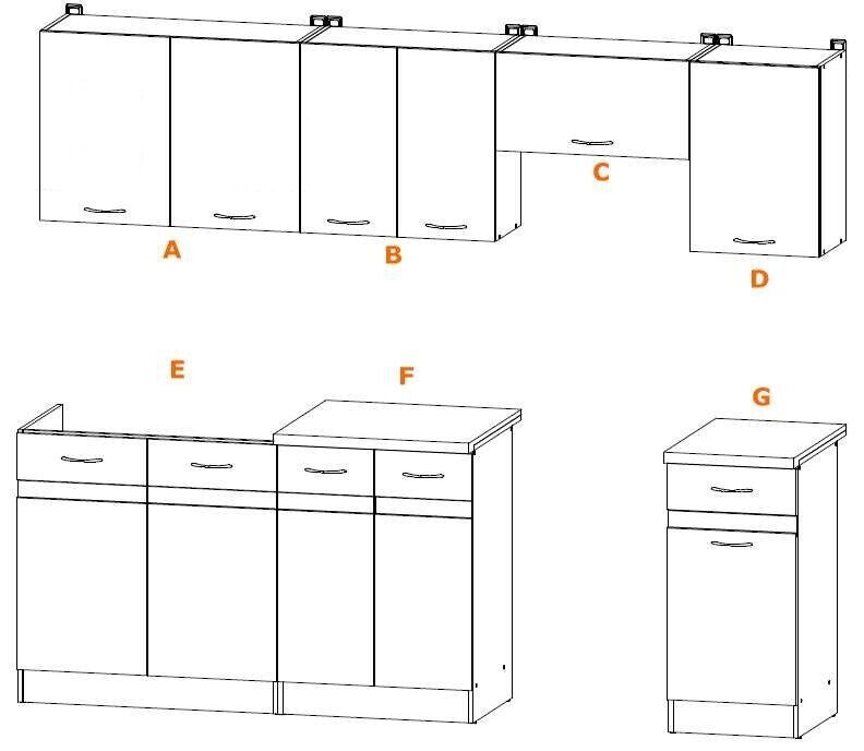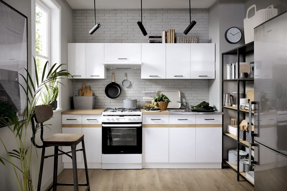 Küche 240cm Schränke, Küchenzeile mit Arbeitsplatten Weiss mit Golden Craft Neu