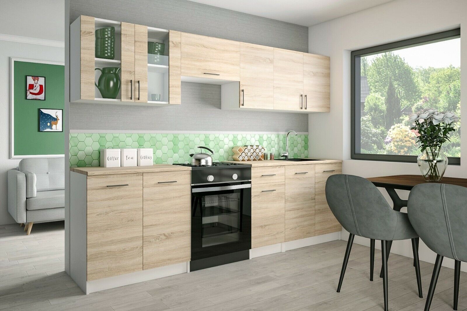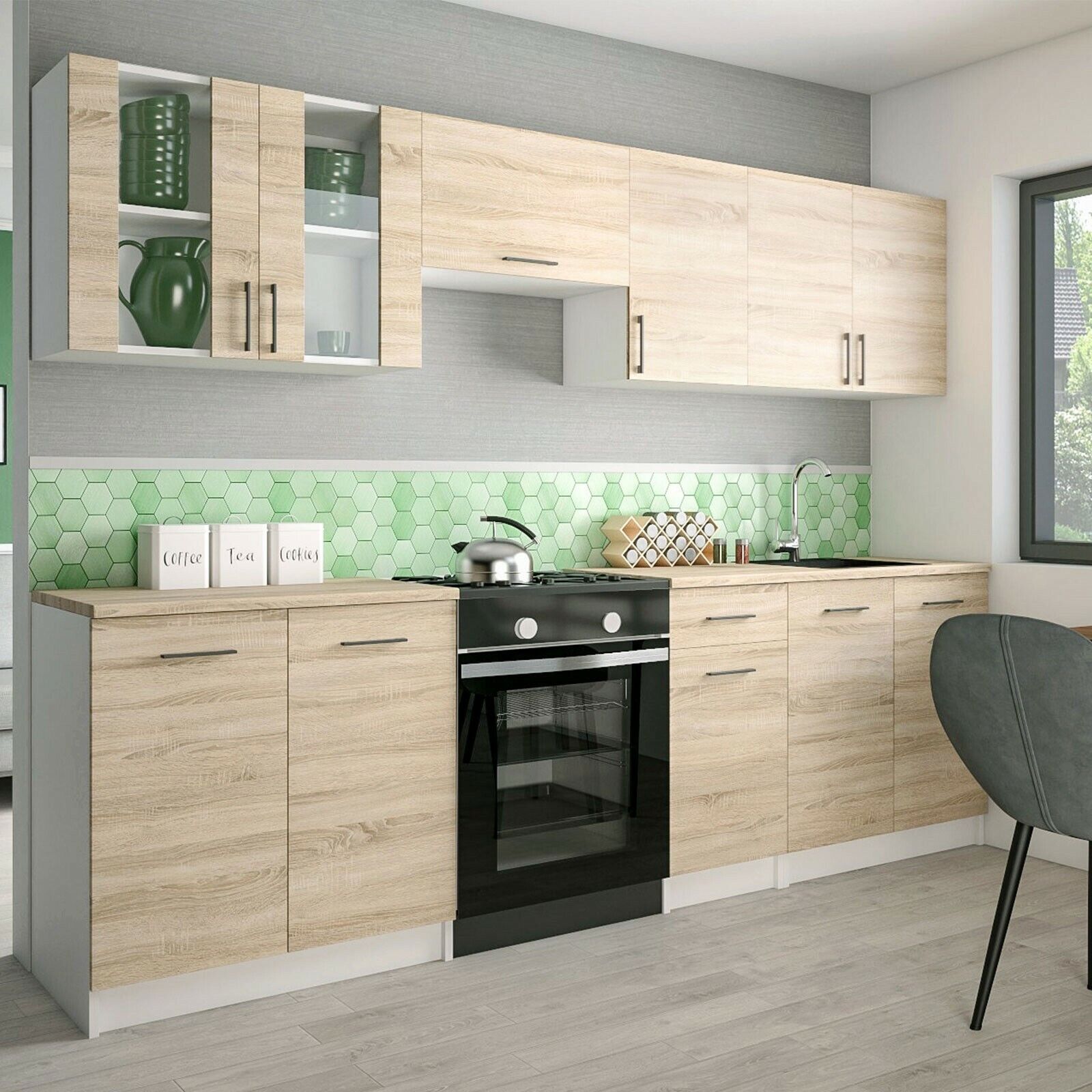KÜCHE 260cm Küchenzeile Küchenblock MODERN Einbauküche Sonoma