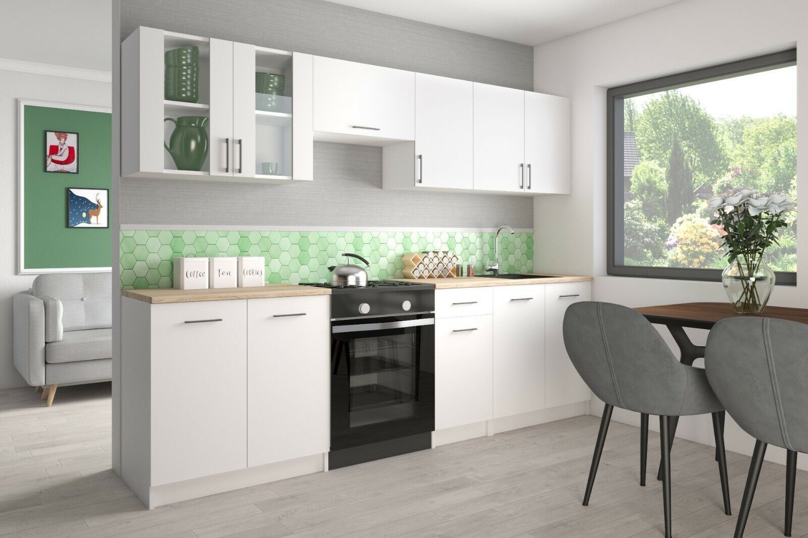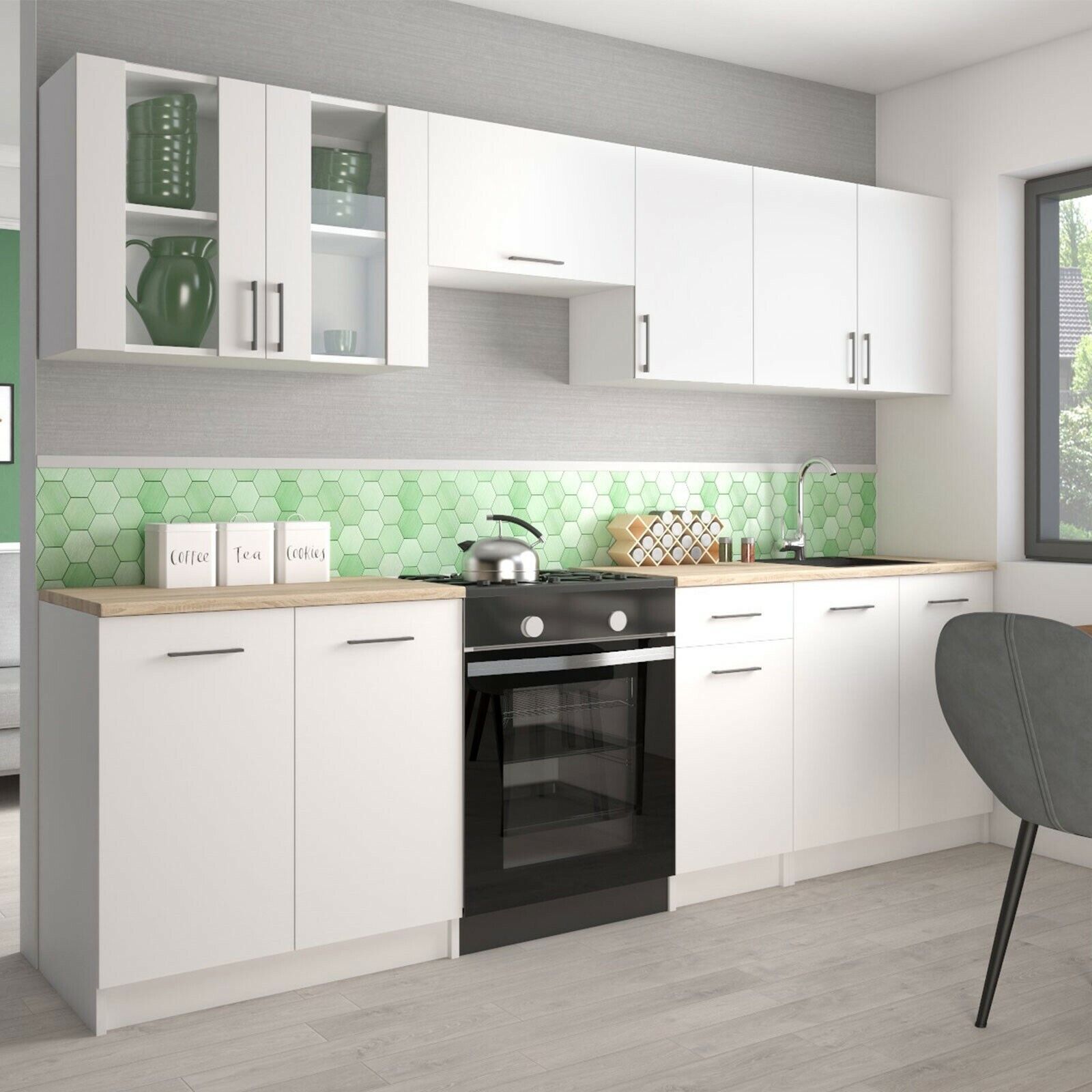 KÜCHE 260cm Küchenzeile Küchenblock MODERN Einbauküche weiß