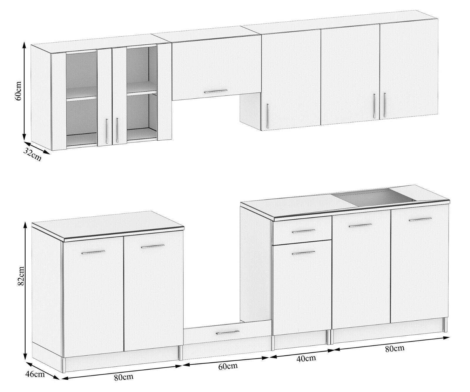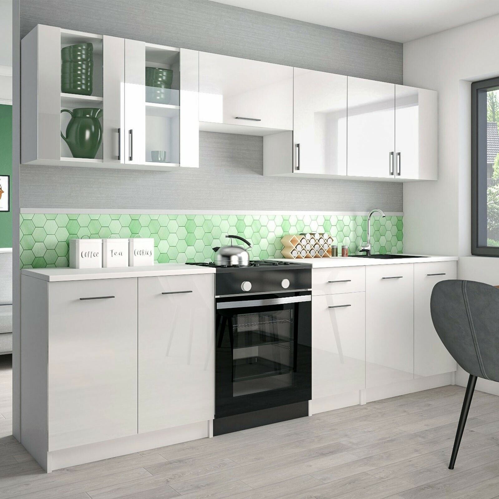 KÜCHE 260cm Küchenzeile Küchenblock MODERN Einbauküche weiß Hochglanz