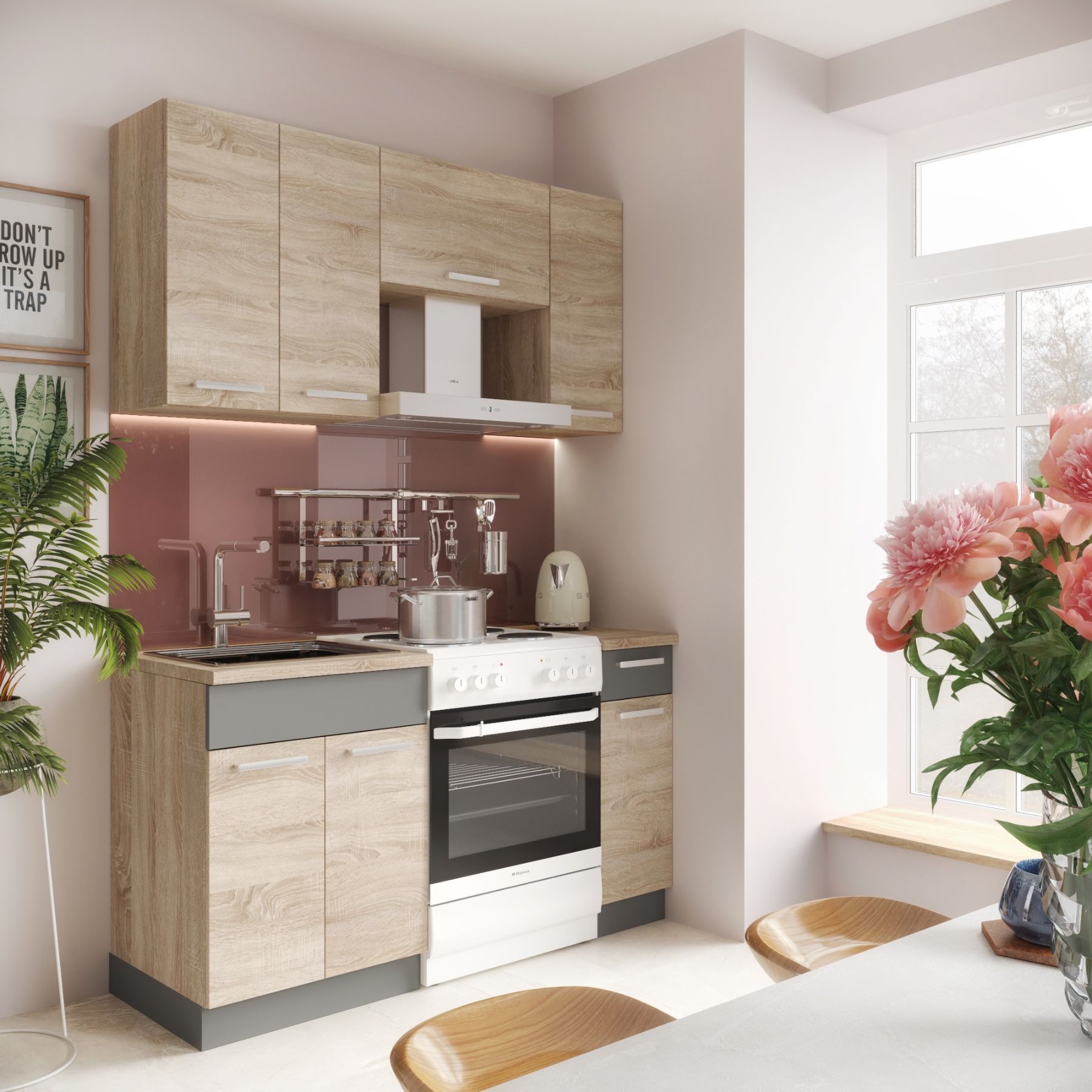 Küche ALINA 150 cm Küchenzeile Einbauküche Küchenblock SONOMA EICHE