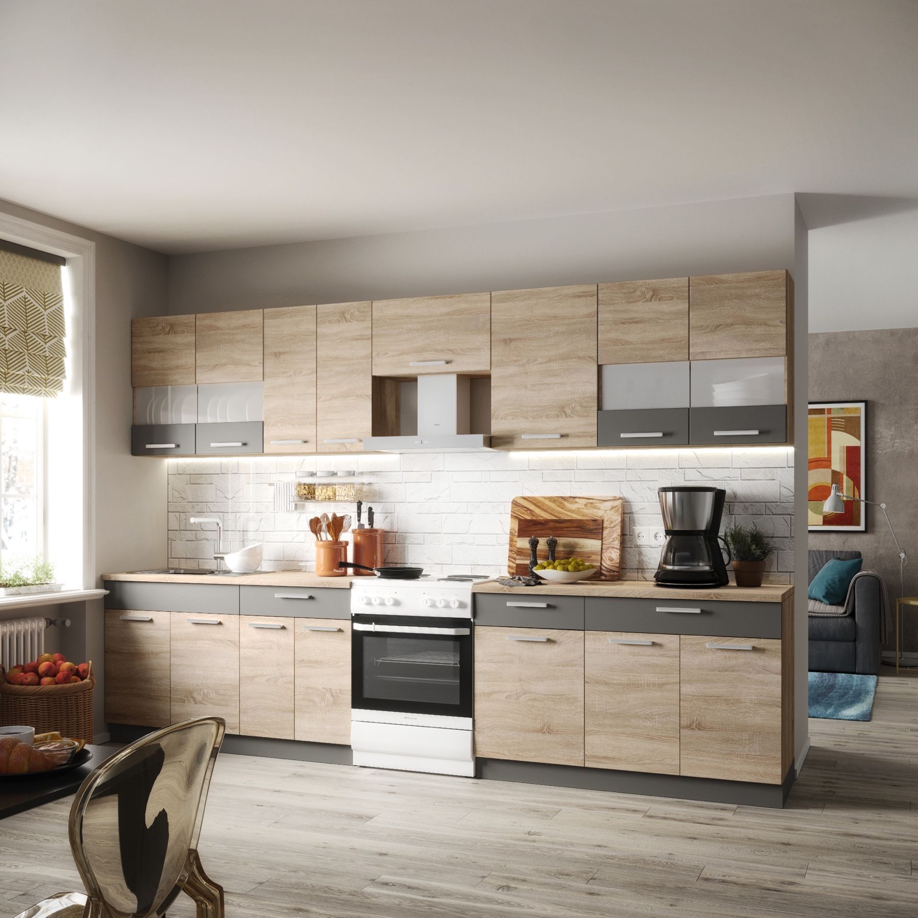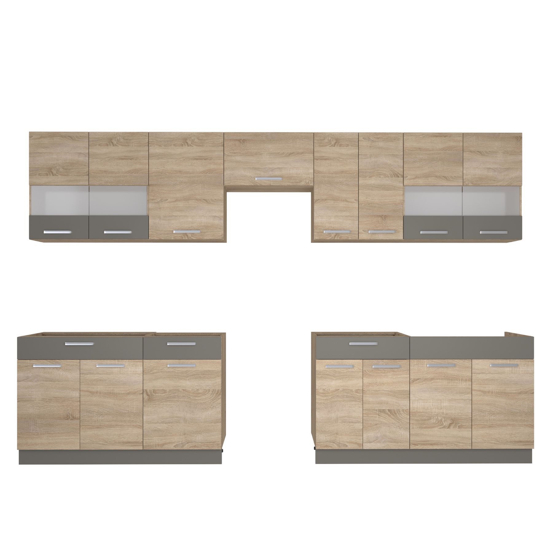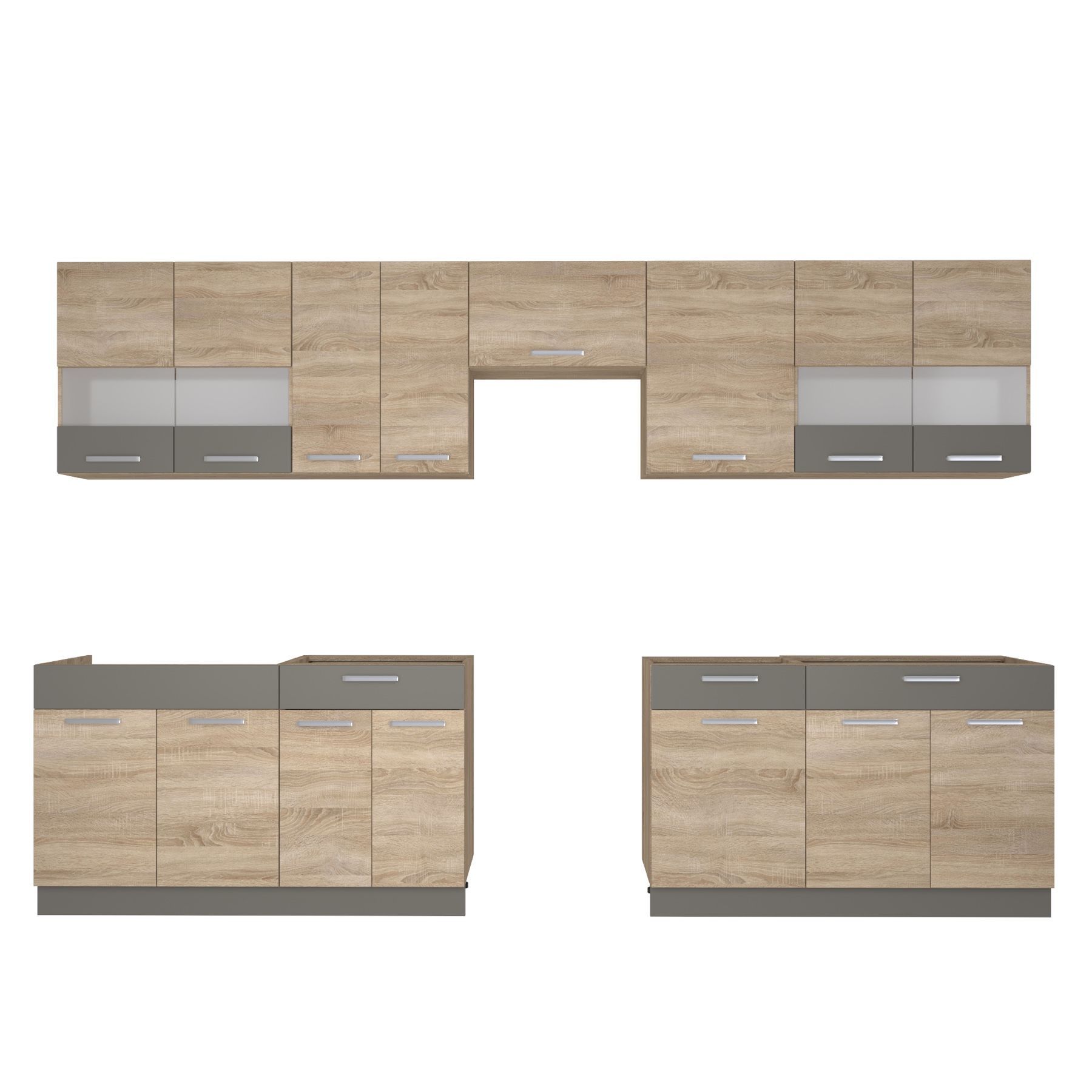 Küche ALINA 330 cm Küchenzeile Einbauküche Küchenblock Eiche / Mocca NEU