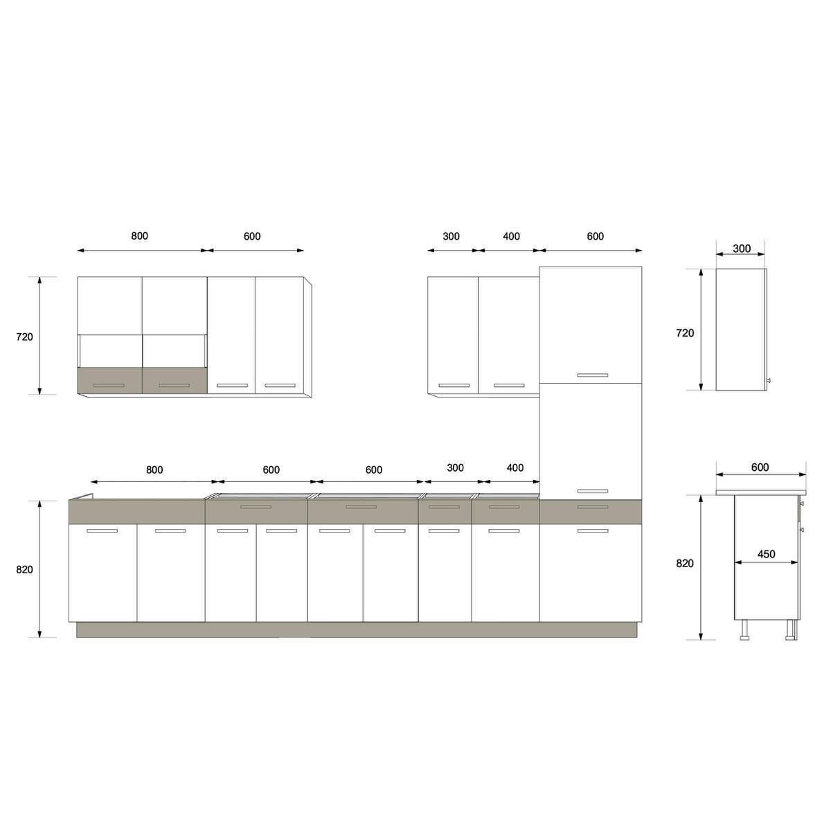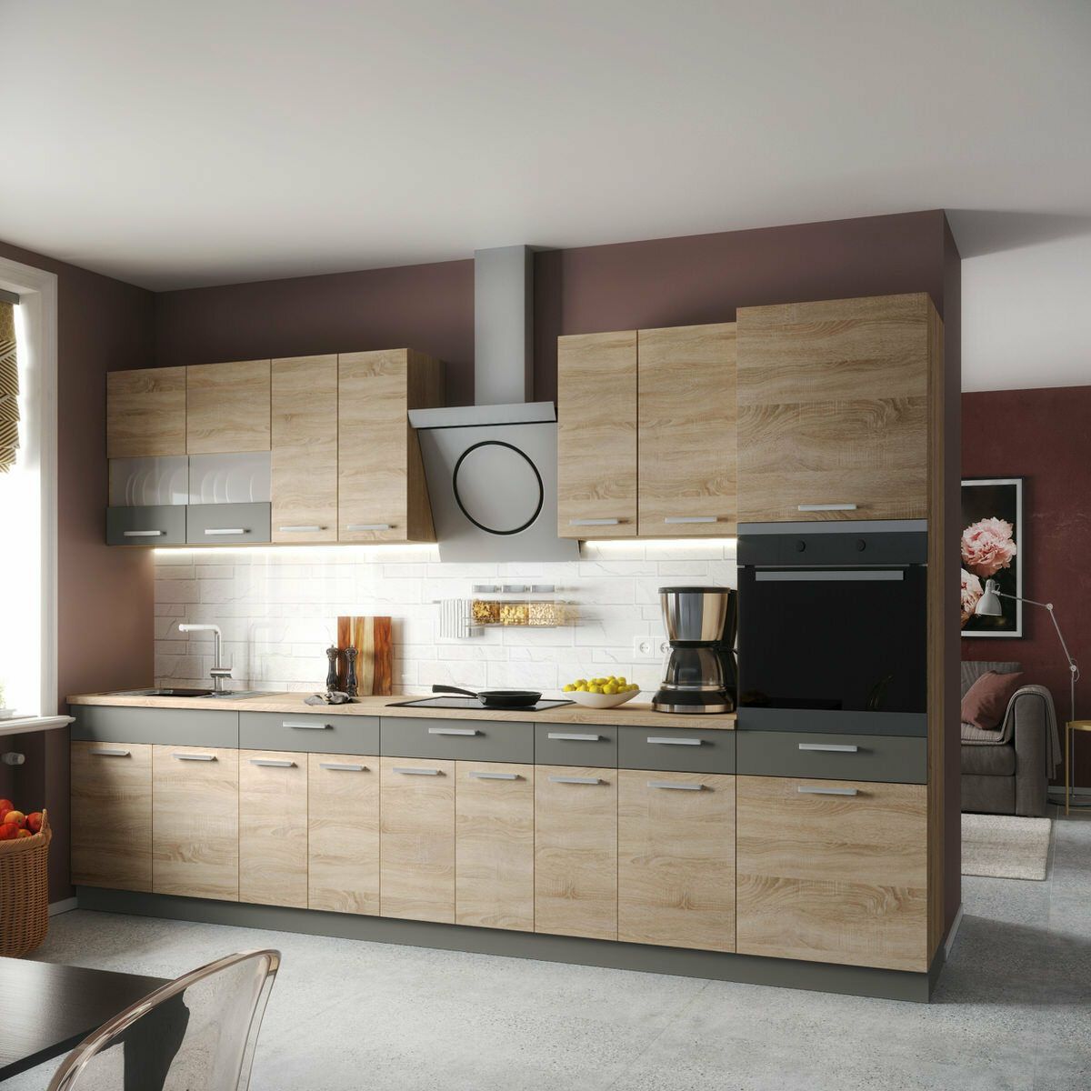 Küche ALINA mit Hochschrank 330 cm Küchenzeile Einbauküche Sonoma Eiche