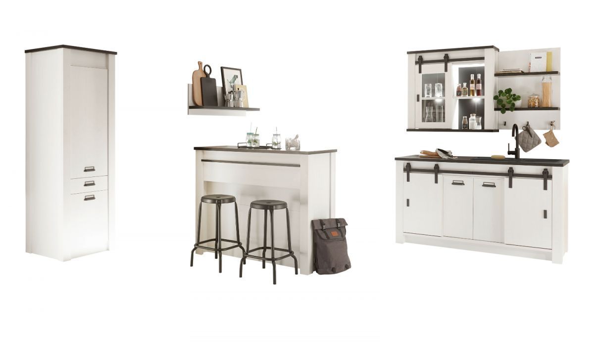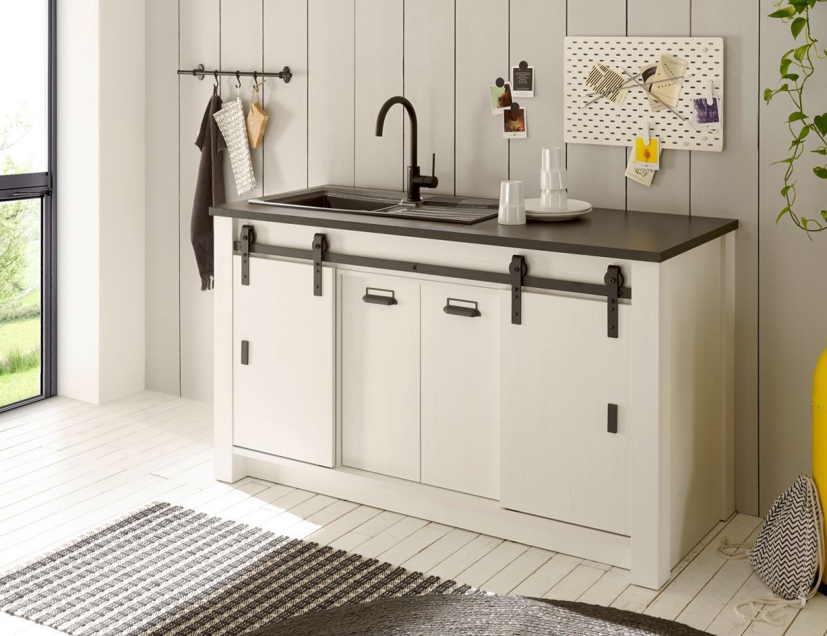 Küche Einbauküche Küchen-Set 6-tlg. Schiebetür Theke Bar weiß Pinie Landhaus Stove