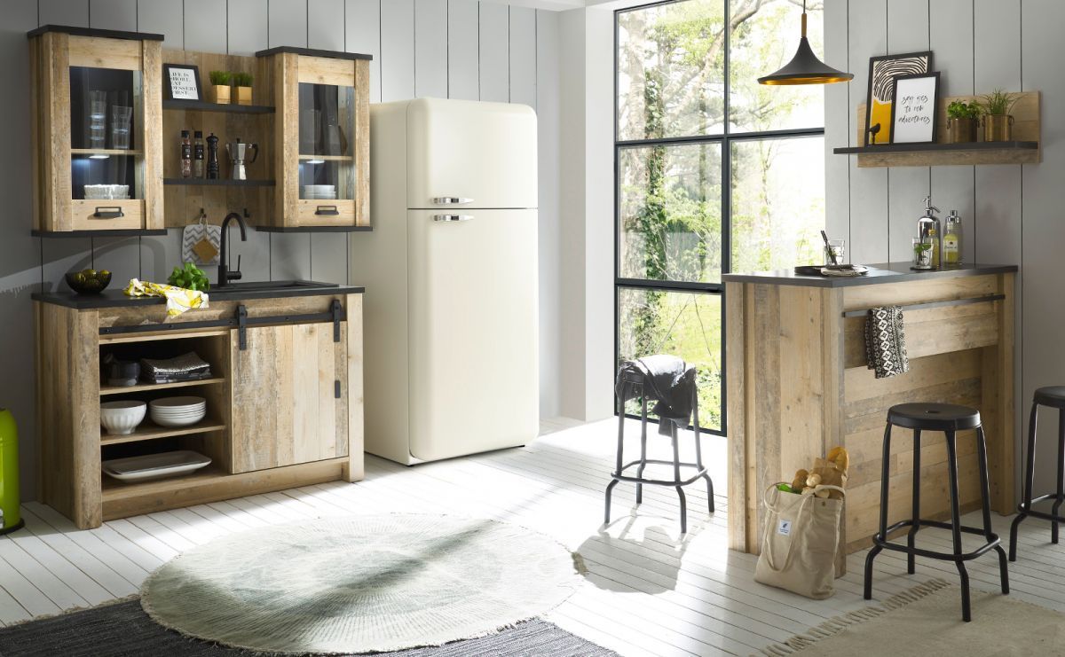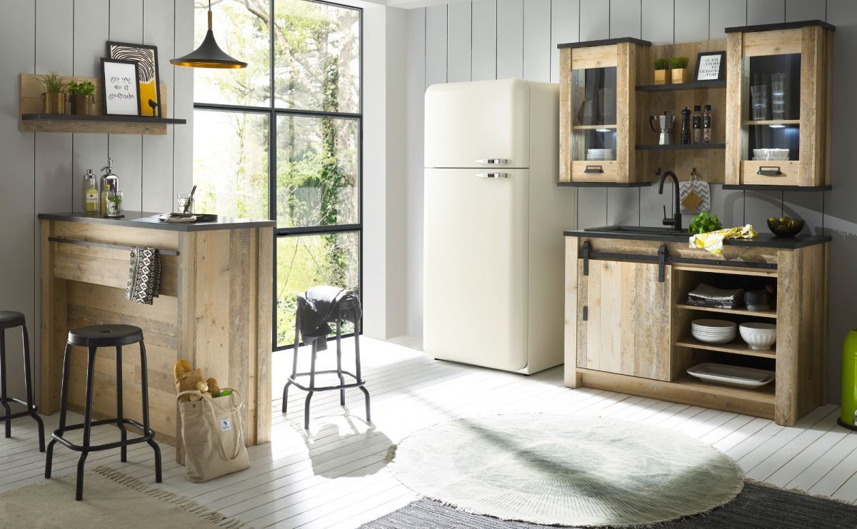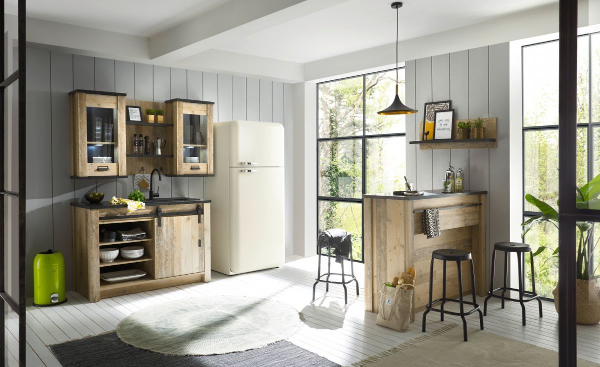Küche Einbauküche Theke Bar Küchen-Set 6-tlg. Used Wood Vintage Soft-Close Stove