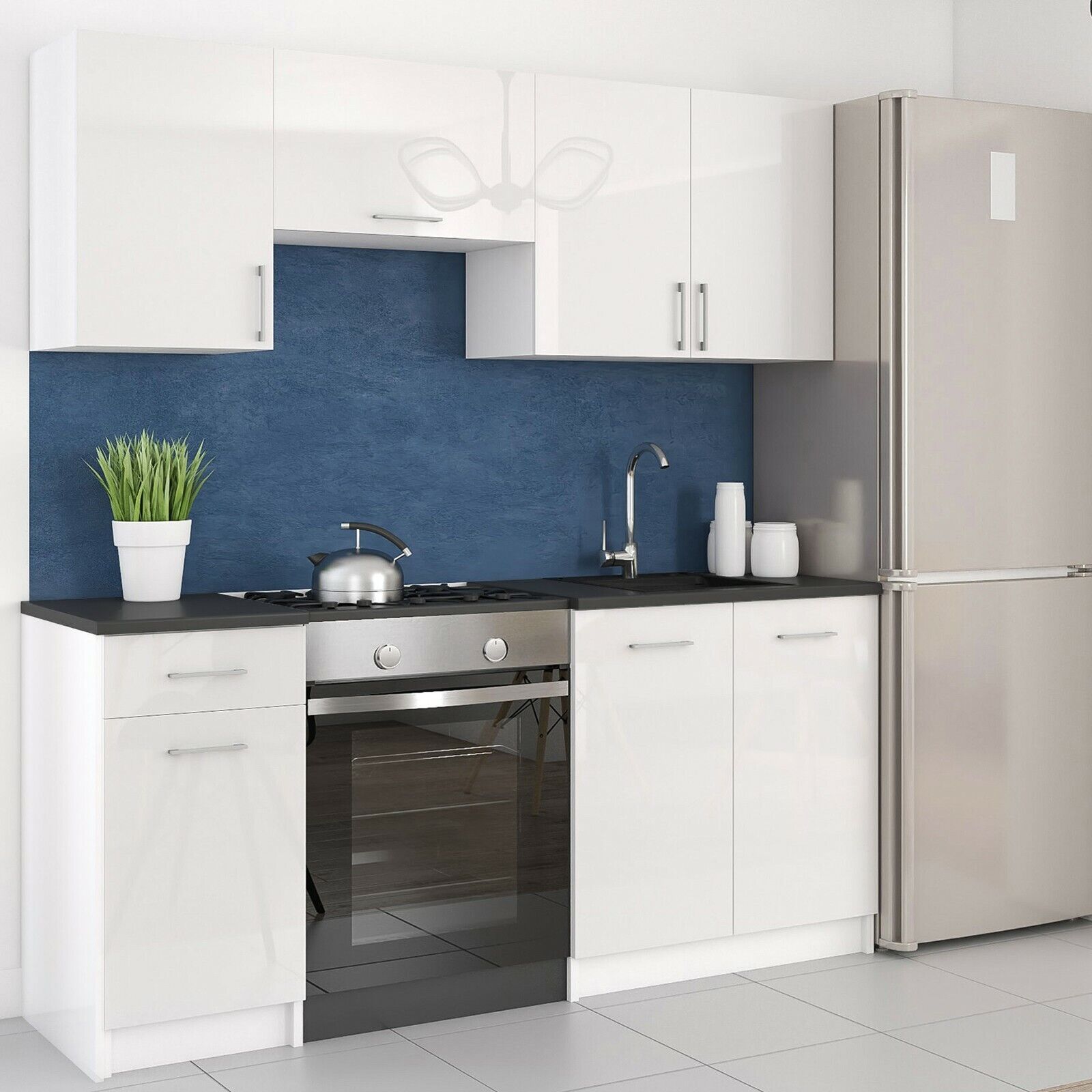 KÜCHE Küchenzeile Küchenblock MODERN 180 CM Einbauküche weiß hochglanz