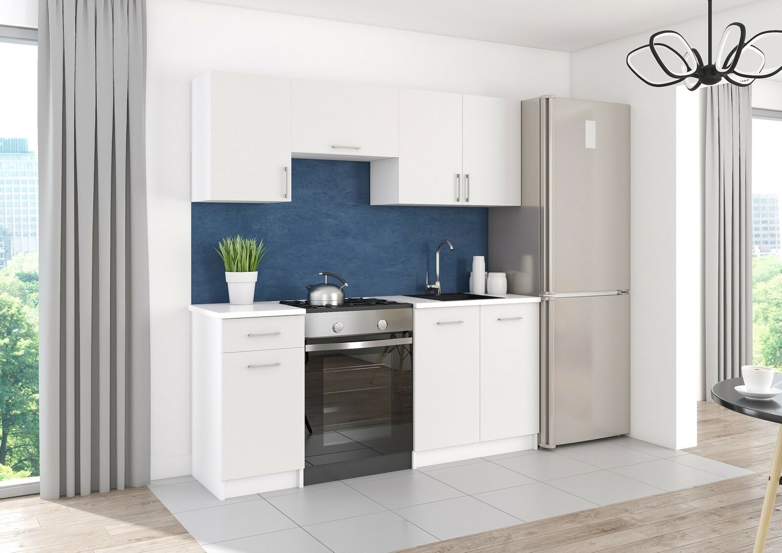 KÜCHE Küchenzeile Küchenblock MODERN 180 CM Einbauküche weiß mat