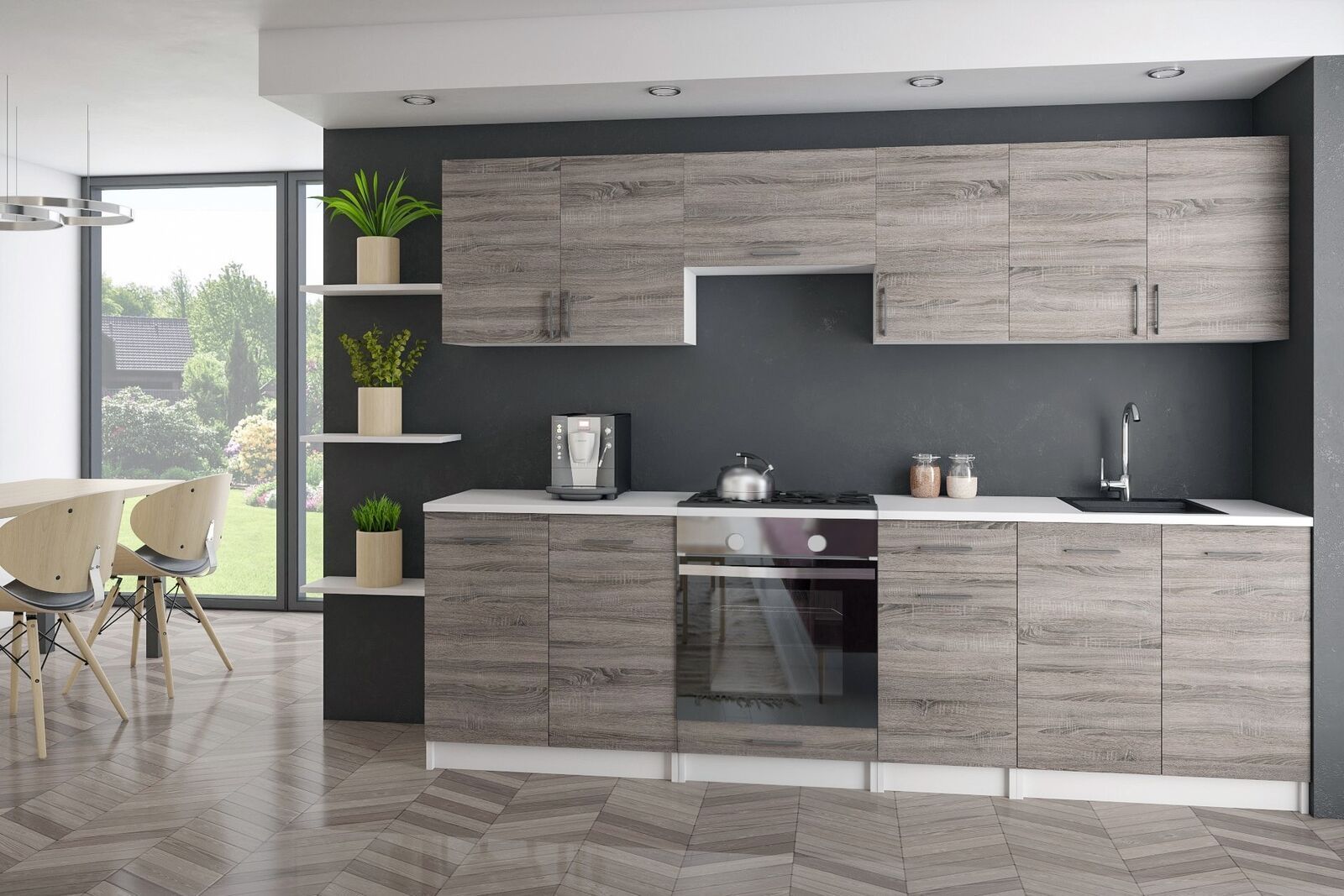 KÜCHE Küchenzeile Küchenblock MODERN 240 CM Einbauküche dunkel sonoma Front 18mm