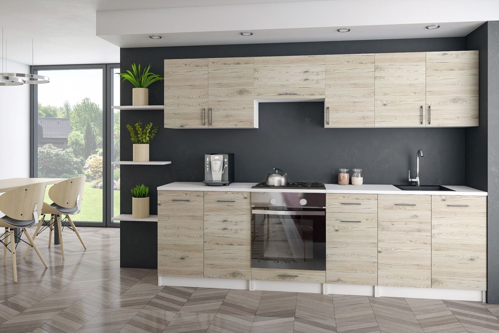 KÜCHE Küchenzeile Küchenblock MODERN 240 CM Einbauküche eiche Front 18mm