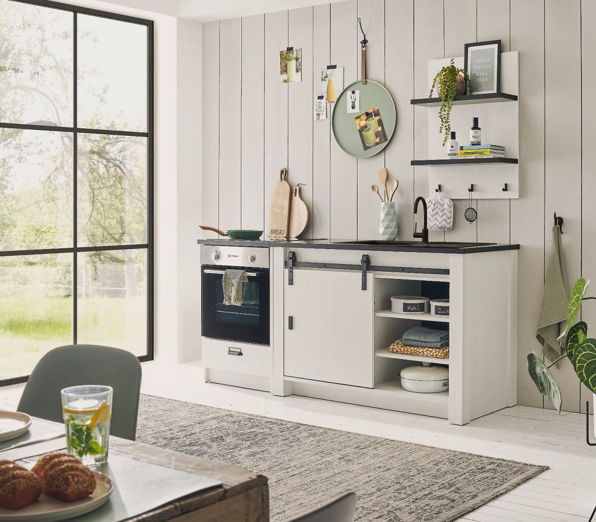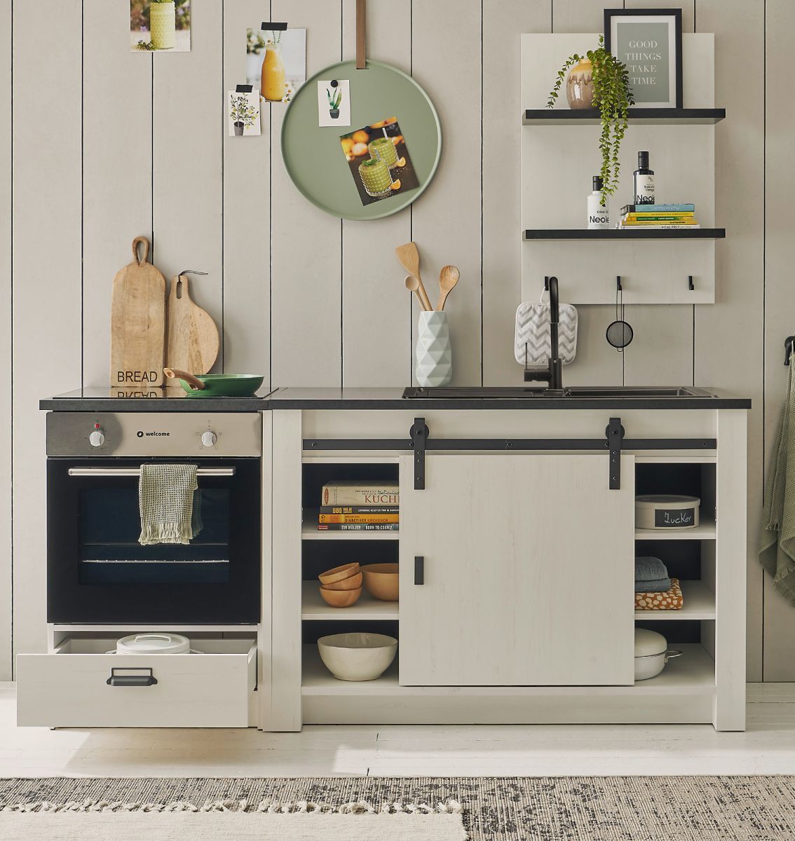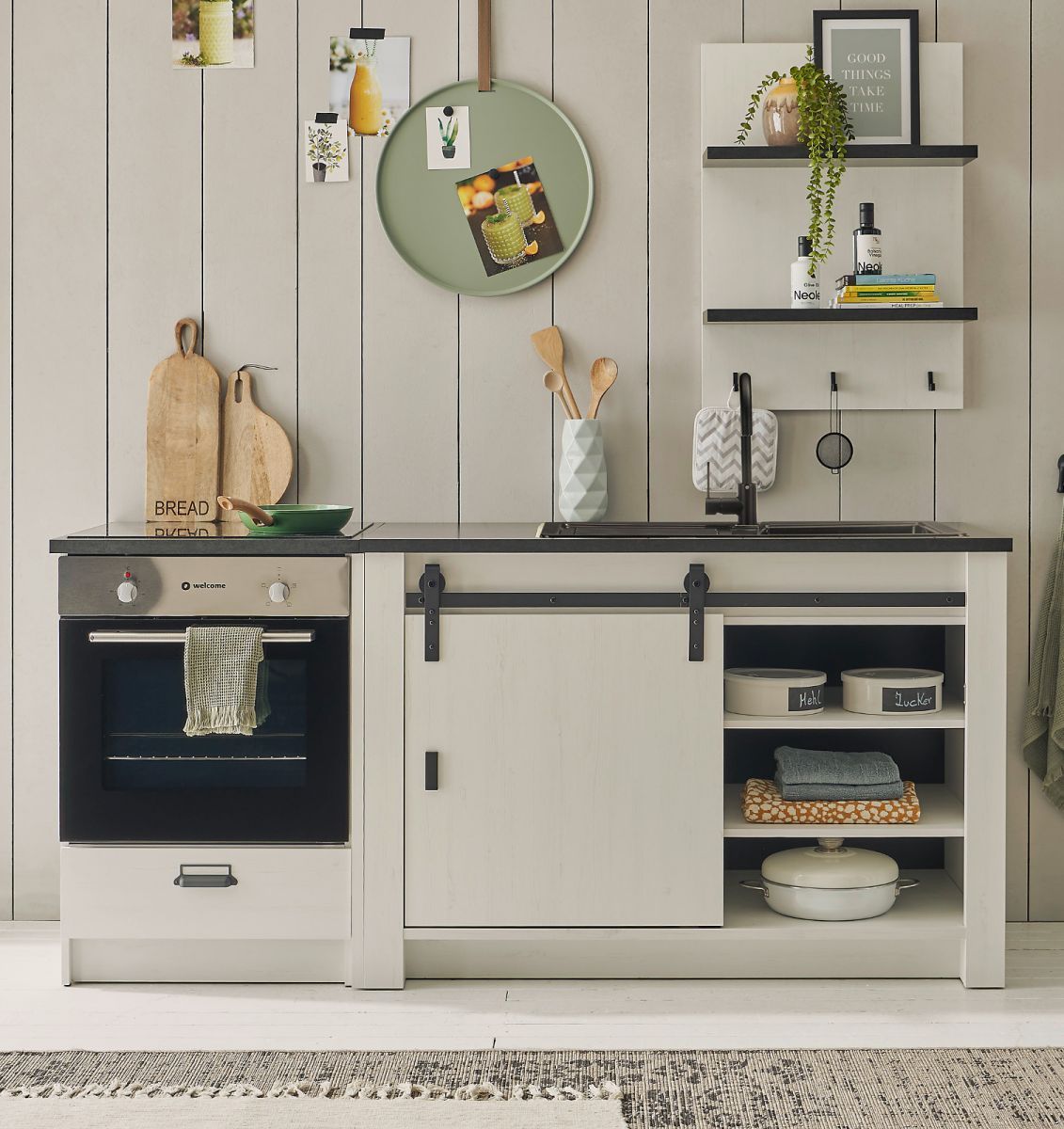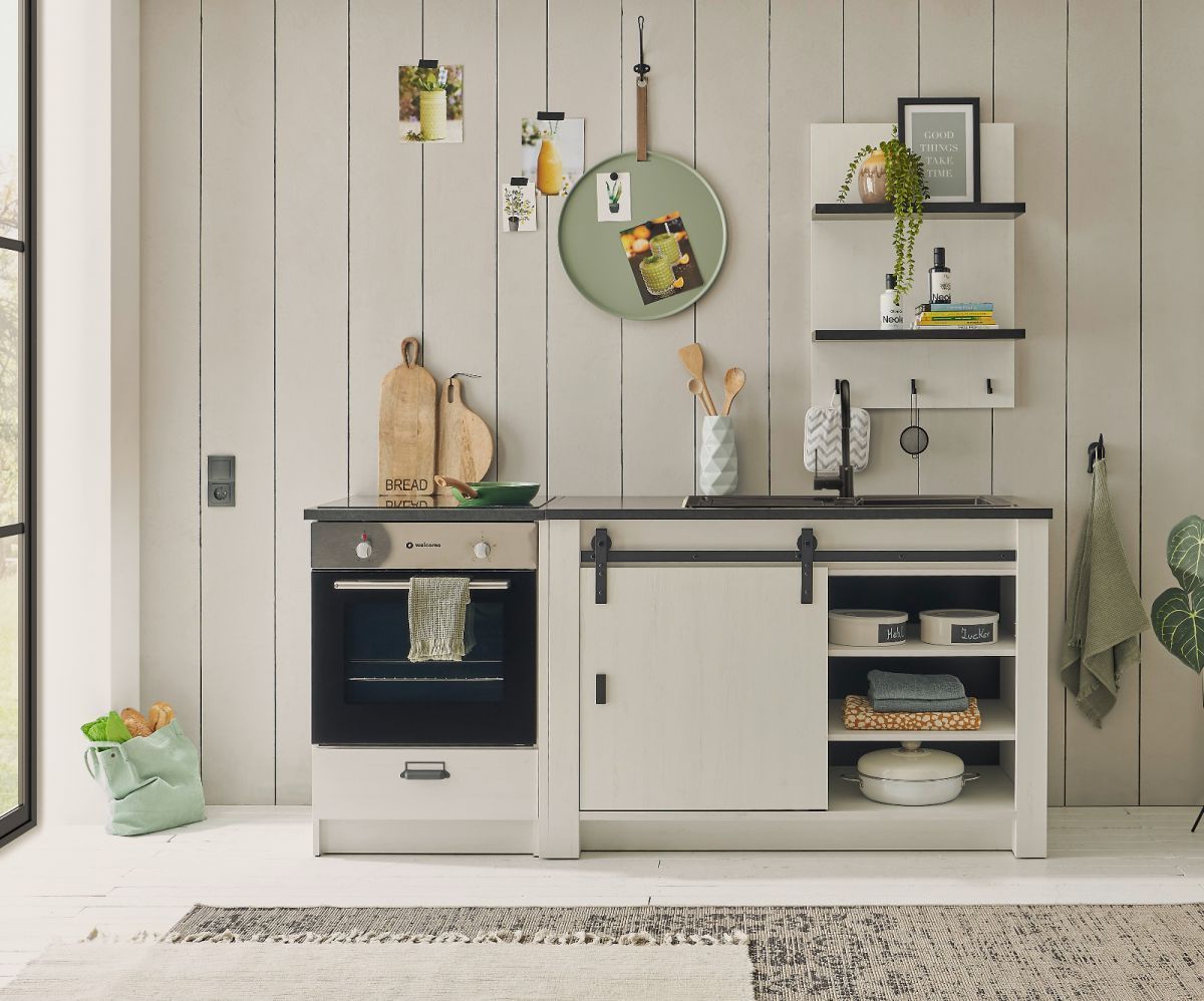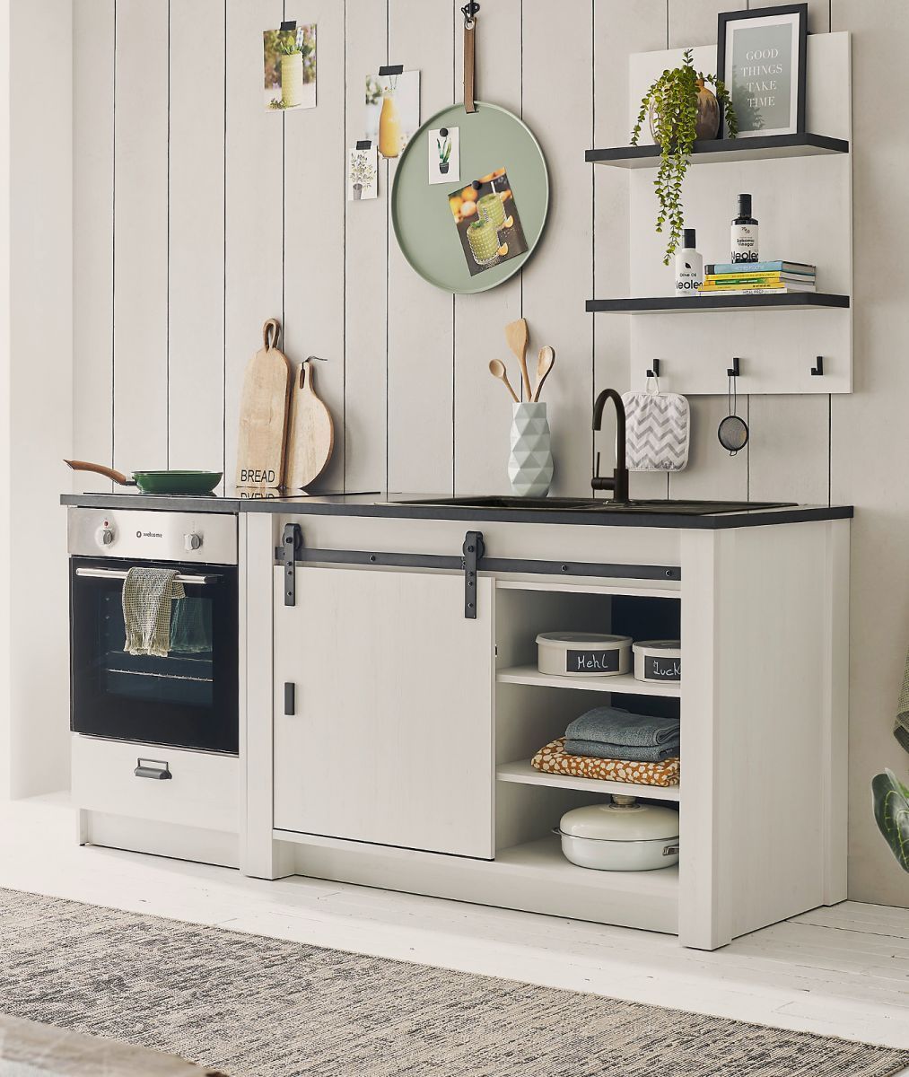 Küche Küchenzeile Single-Küche Set 3-tlg weiß Pinie Landhaus Küchenblock Stove 196 cm