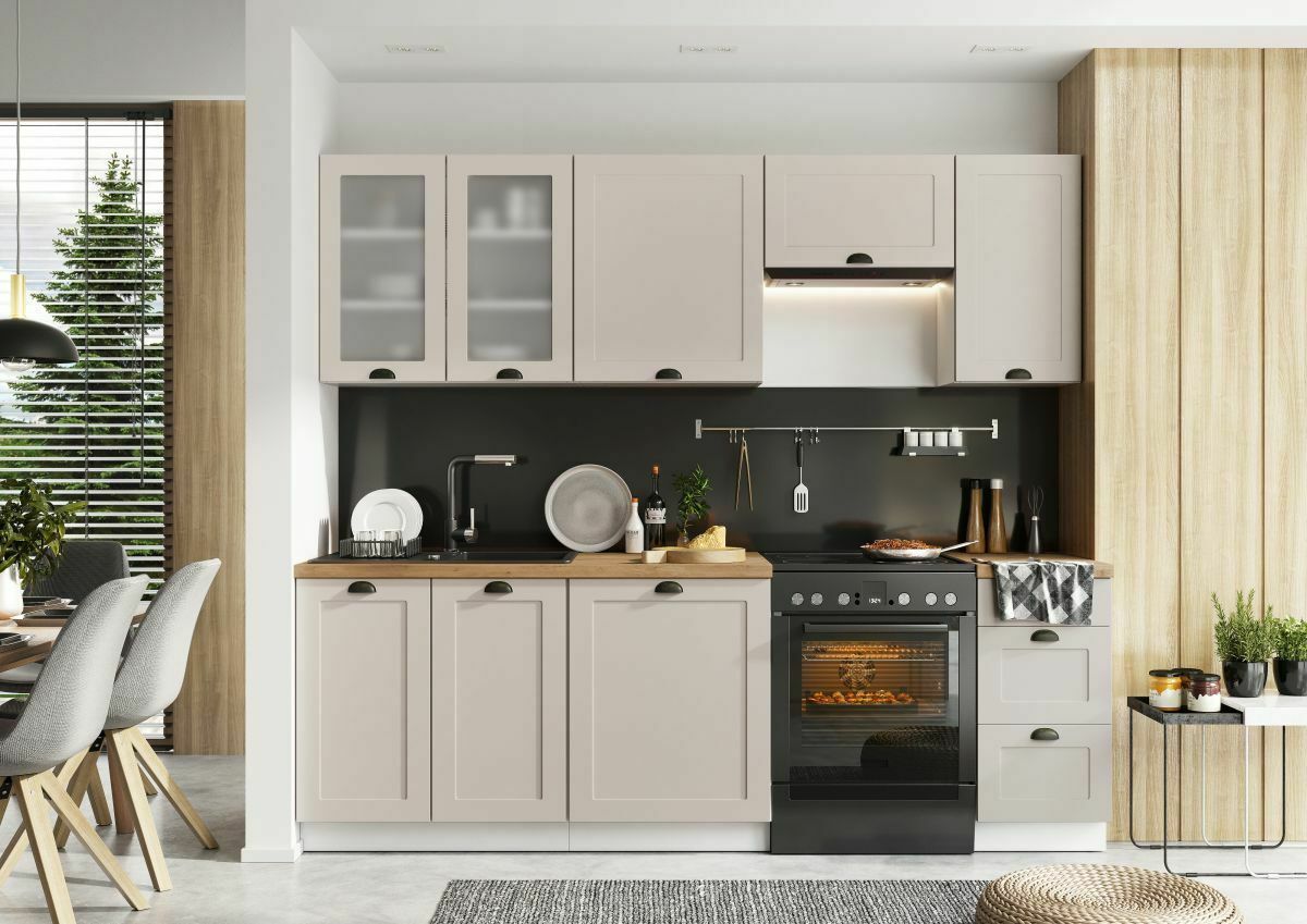 Beispiel Küche Trend Line variabel stellbar NEU & Schnell Fronten: Adele Coffe matt MDF Griffe Mussel schwarz Korpus und Sockel: weiss Der Preis versteht sich für Musterküche unten beschrieben ohne E-Geräte, Arbeitsplatten, Spüle und Dekoration. Griffe und Sockel sind im Preis enthalten. Lieferu