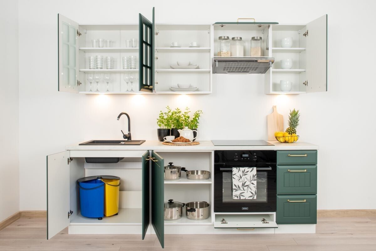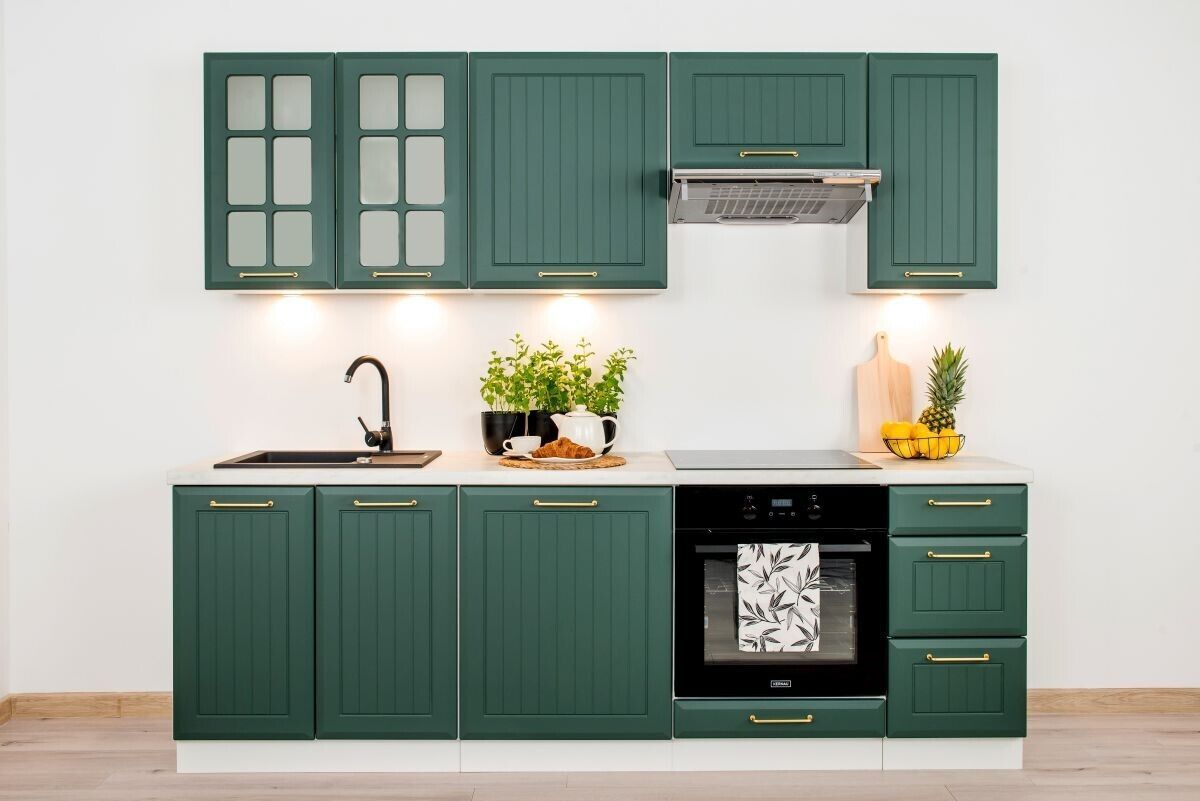 Küche Schränke Küchenzeile erweiterbar Grün matt Softclose Schubladen
