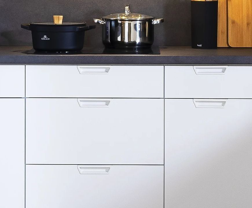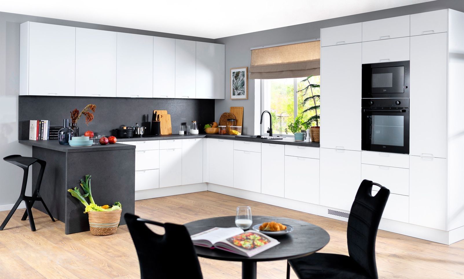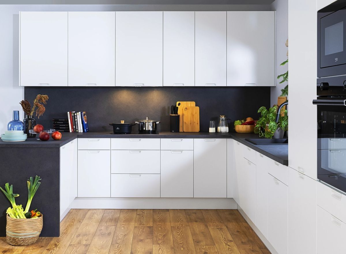 Küche, Schränke, Küchenzeile erweiterbar weiss supermatt Fronten Neu&Schnell