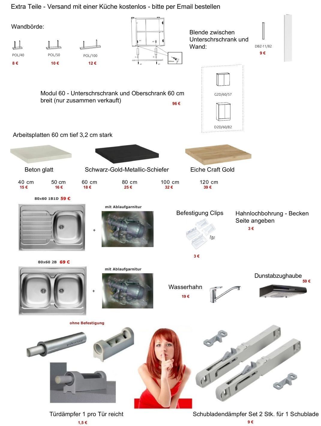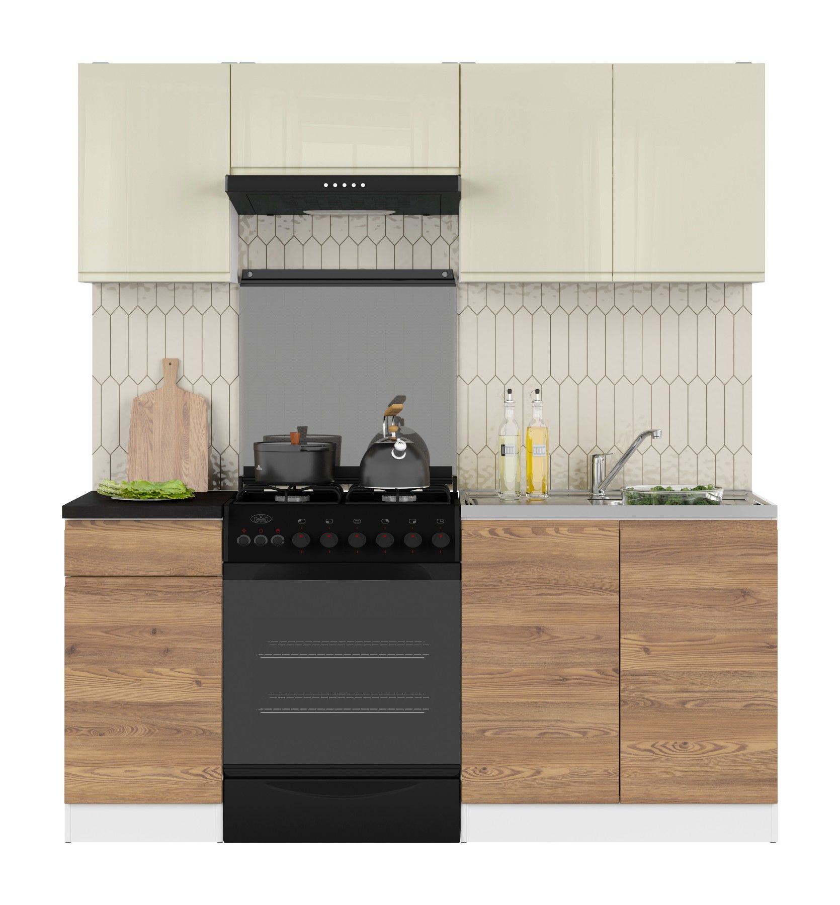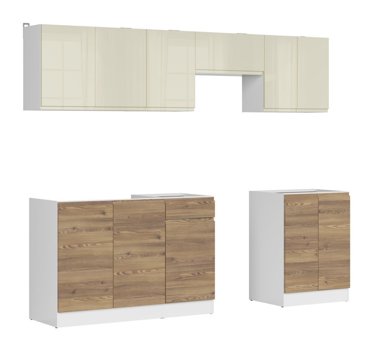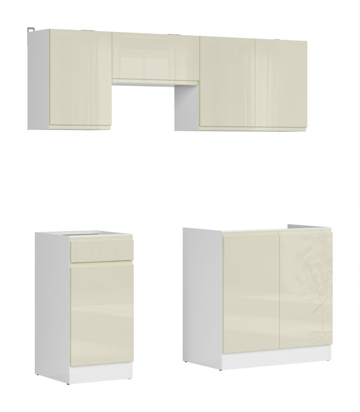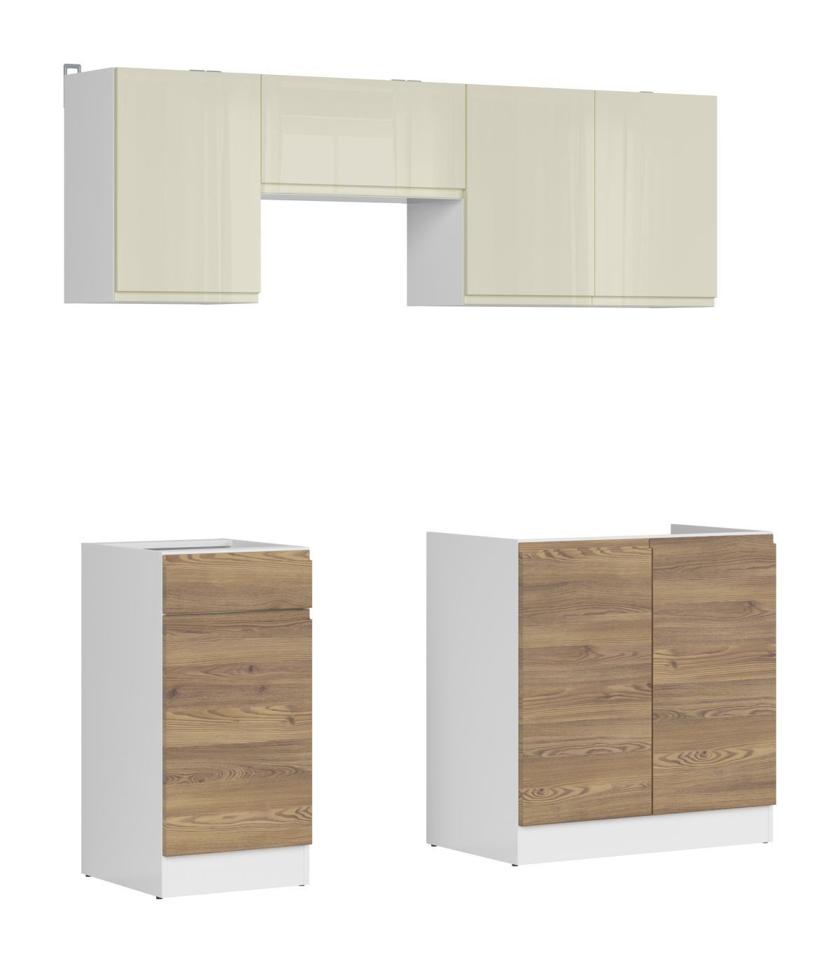 Küche, Schränke, Küchenzeile Grifflos, Griffmulden Lärche Vanille Neu&Schnell