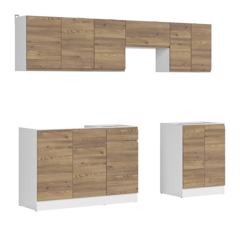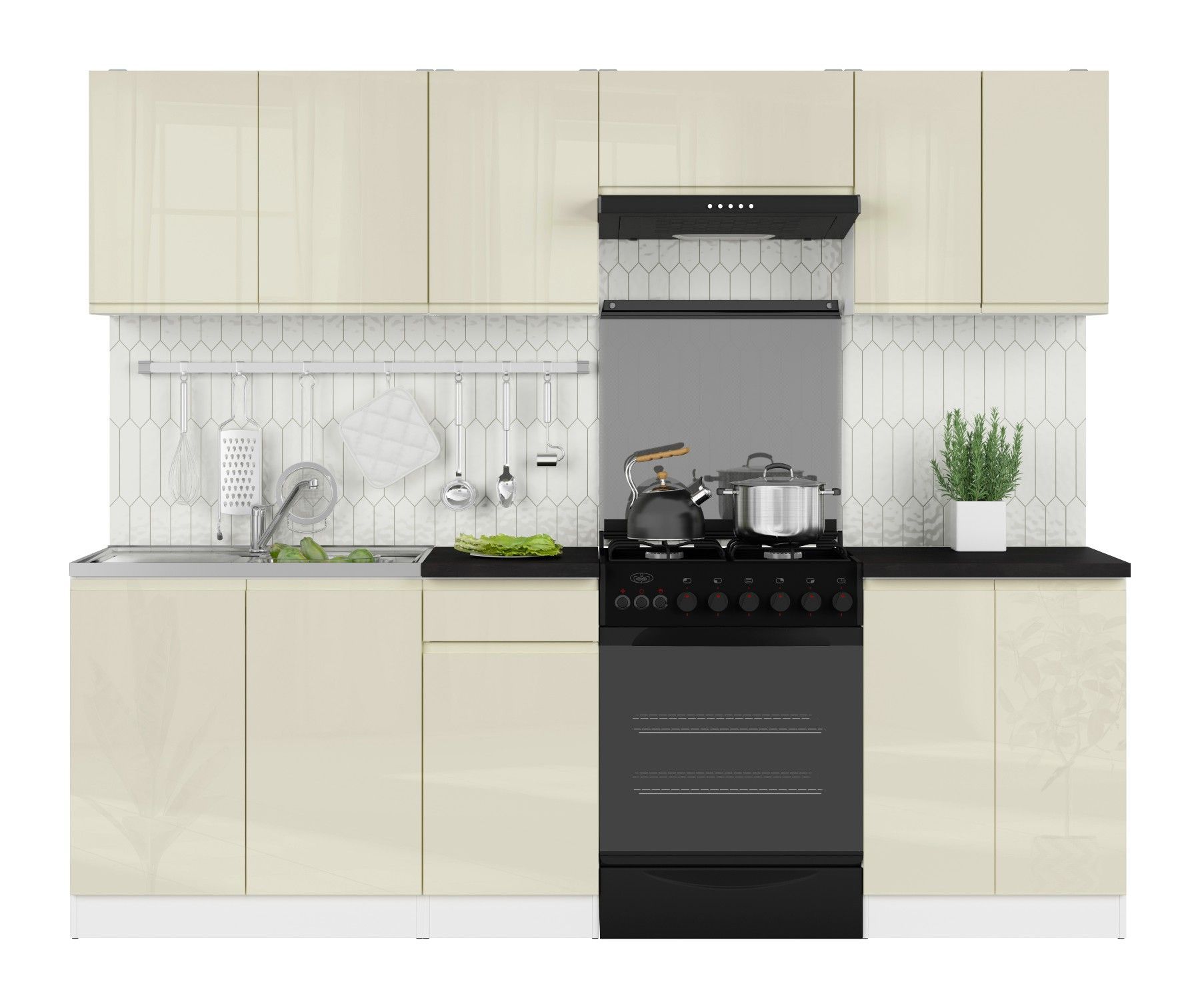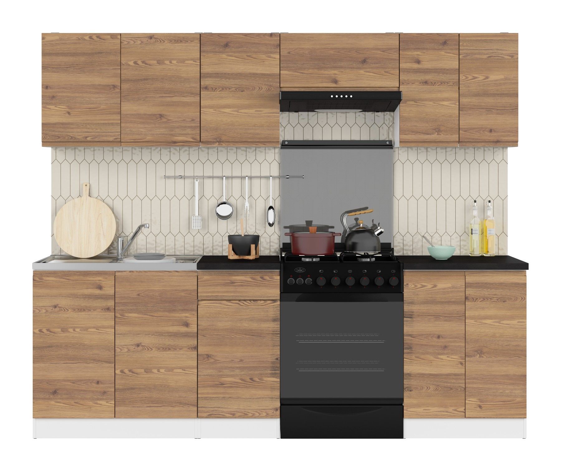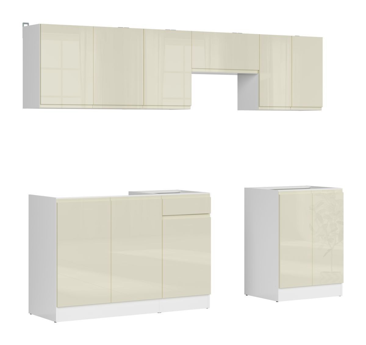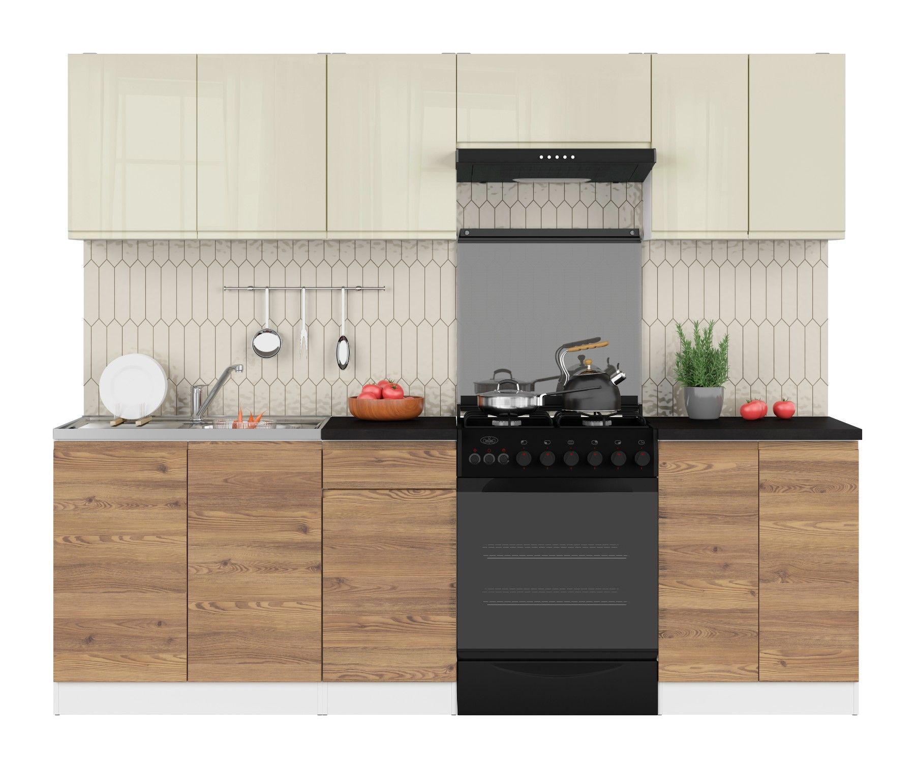 Küche, Schränke, Küchenzeile Grifflos, Griffmulden Lärche Vanille Neu&Schnell