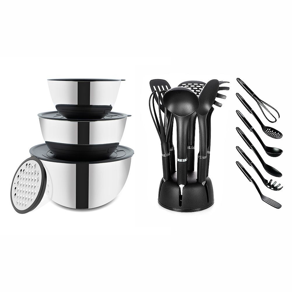 Küchen-Kombi-Set: Edelstahlschüssel Set und 6-tlg. Küchenhelfer Set