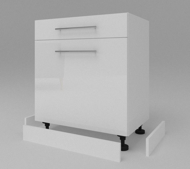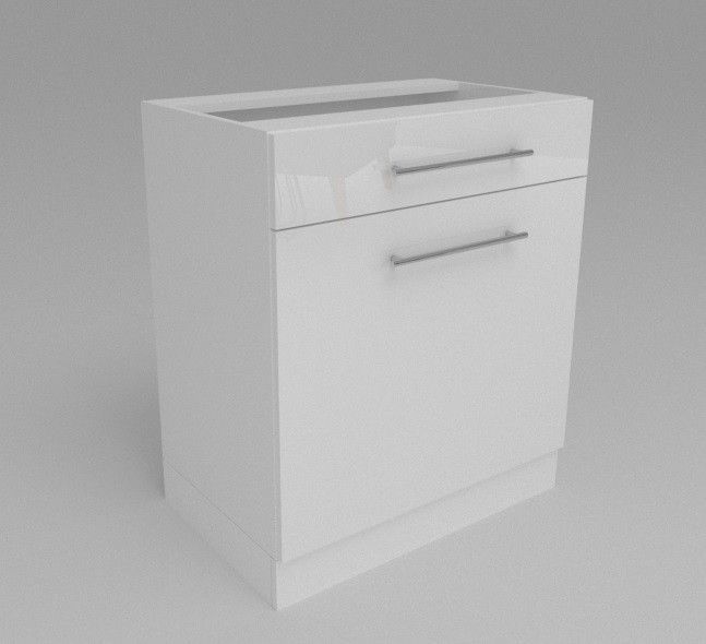 Küchen Unterschrank 1 Tür 1 Schublade Weiß Hochglanz 30-70cm Tiefe 55 Möbelsockel
