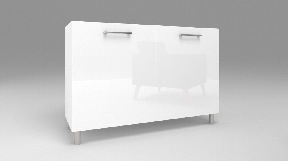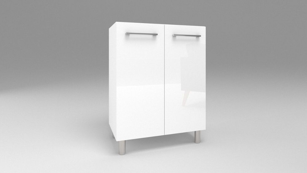 Küchen Unterschrank 2 Türig Weiß Hochglanz Weiß Matt 60-120 cm Füße Chrom