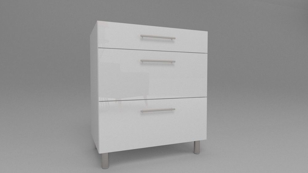 Küchen Unterschrank 3 Schubladen Weiß Hochglanz Matt 30-80 cm chrom Beine