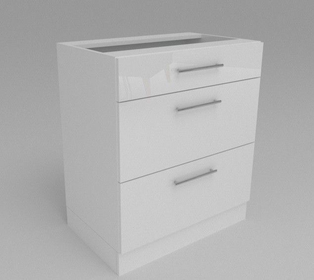 Küchen Unterschrank mit 3 Schubladen Weiß 30-80cm Möbelsockel Hochglanz
