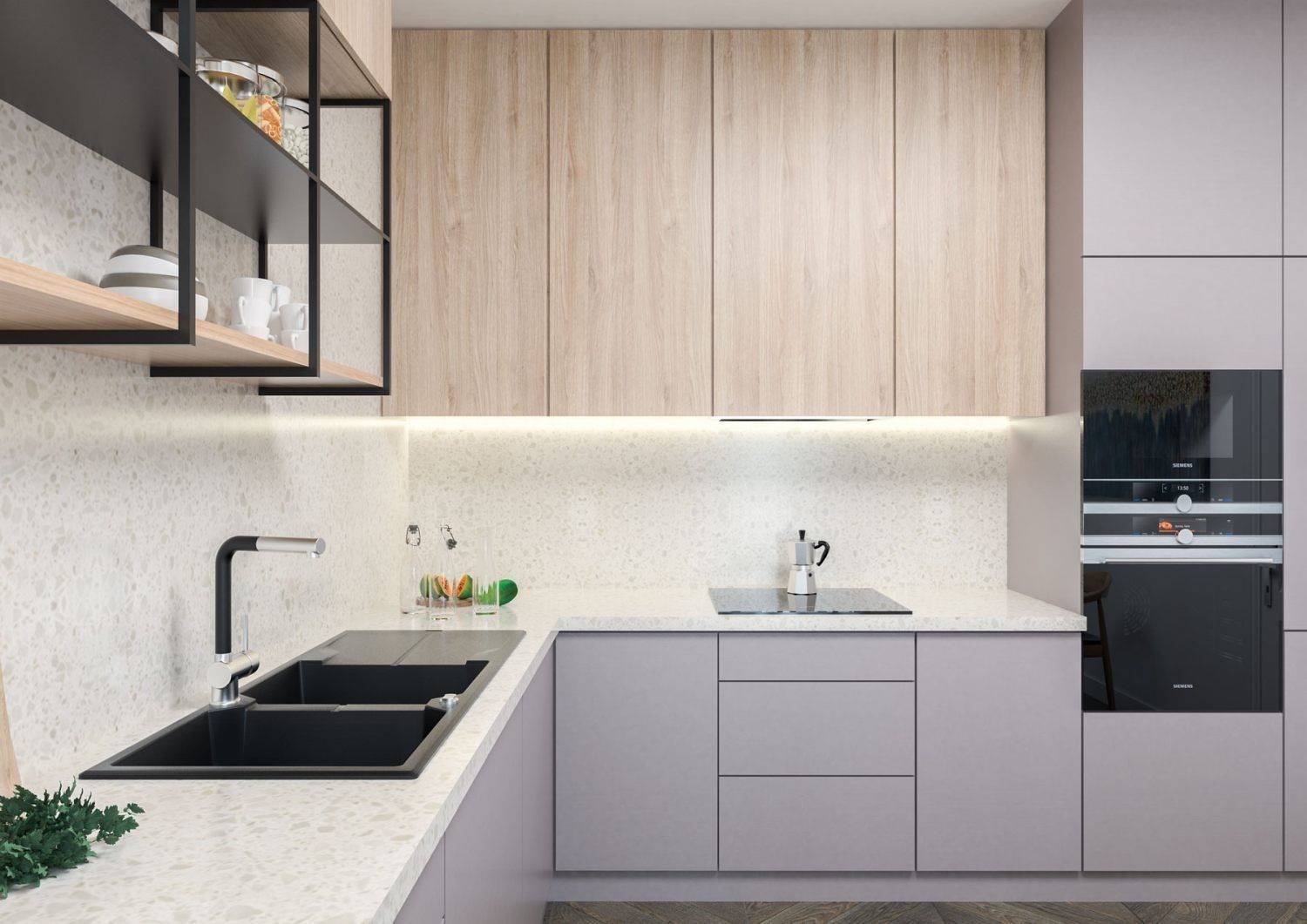 • Küchenarmatur Wasserhahn LILA Küchenmischer für Küche in Silber klappbarem Auslauf
