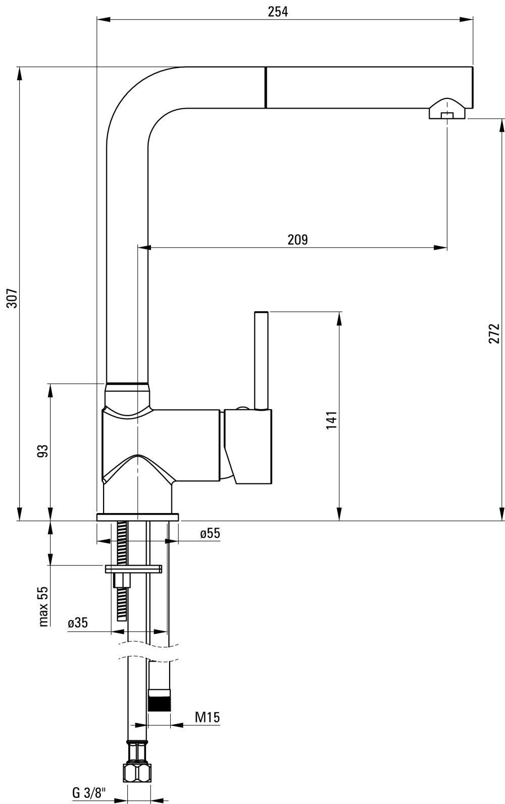 • Küchenarmatur Wasserhahn JOGA PLUS Küchenmischer mit flexiblen Auslauf Küche Schwarz
