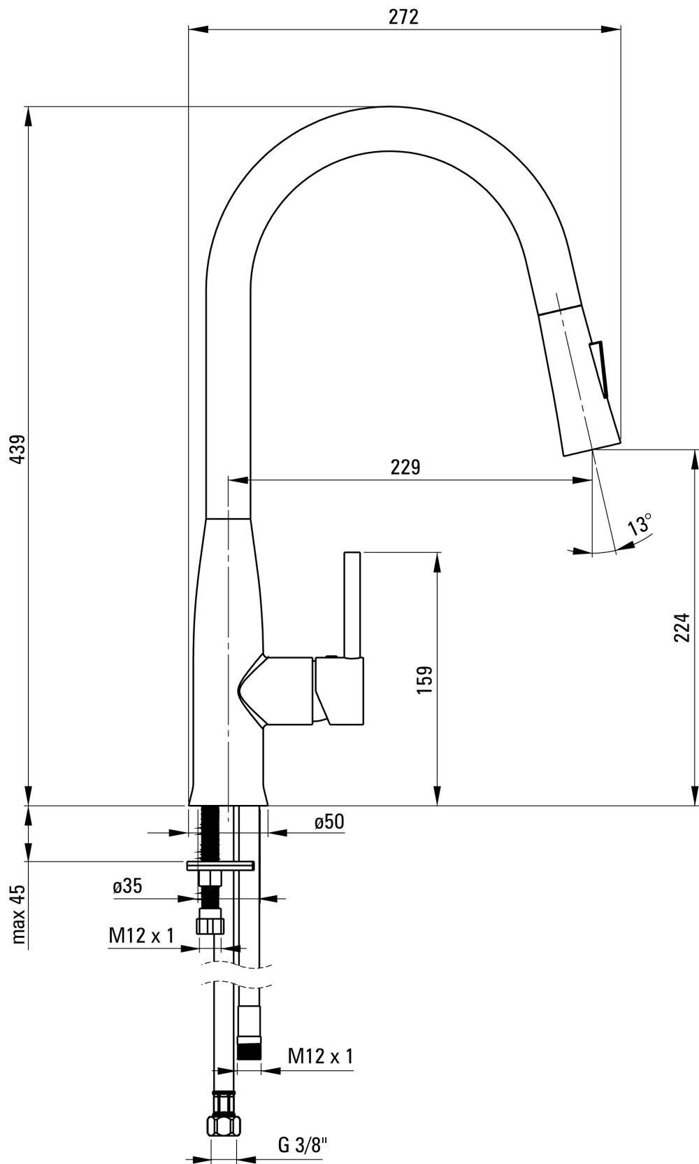 • Küchenarmatur Einhandarmatur Hochdruck mit schwenkbarem Auslauf, Chrom