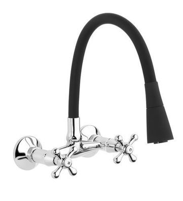 • Küchenarmatur Wandmontage ELZA Küchenmischer mit flexiblen Auslauf Chrom-Schwarz
