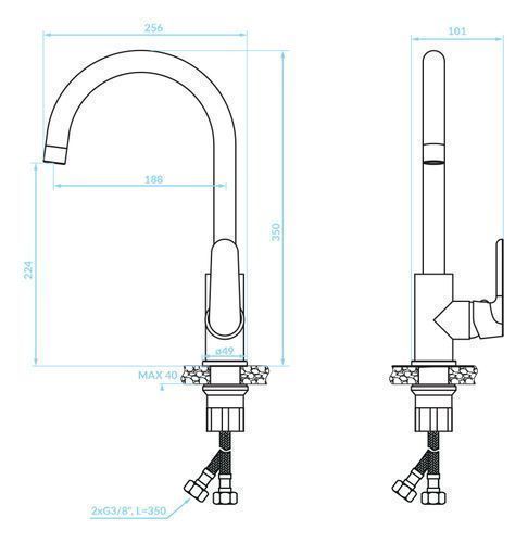 Küchenarmatur Wasserhahn DIMA Küchenmischer für Küche in Schwarz Spültischarmatur