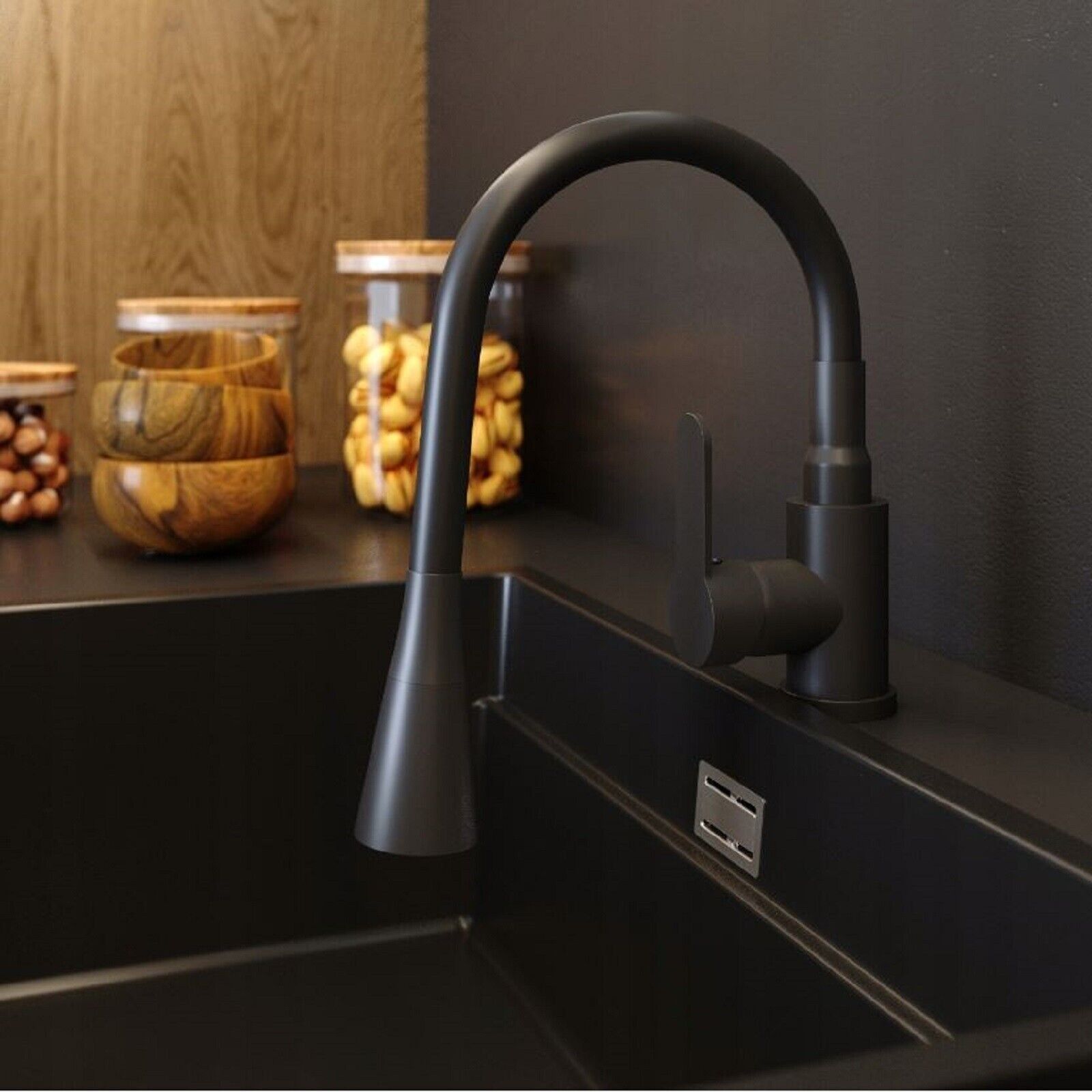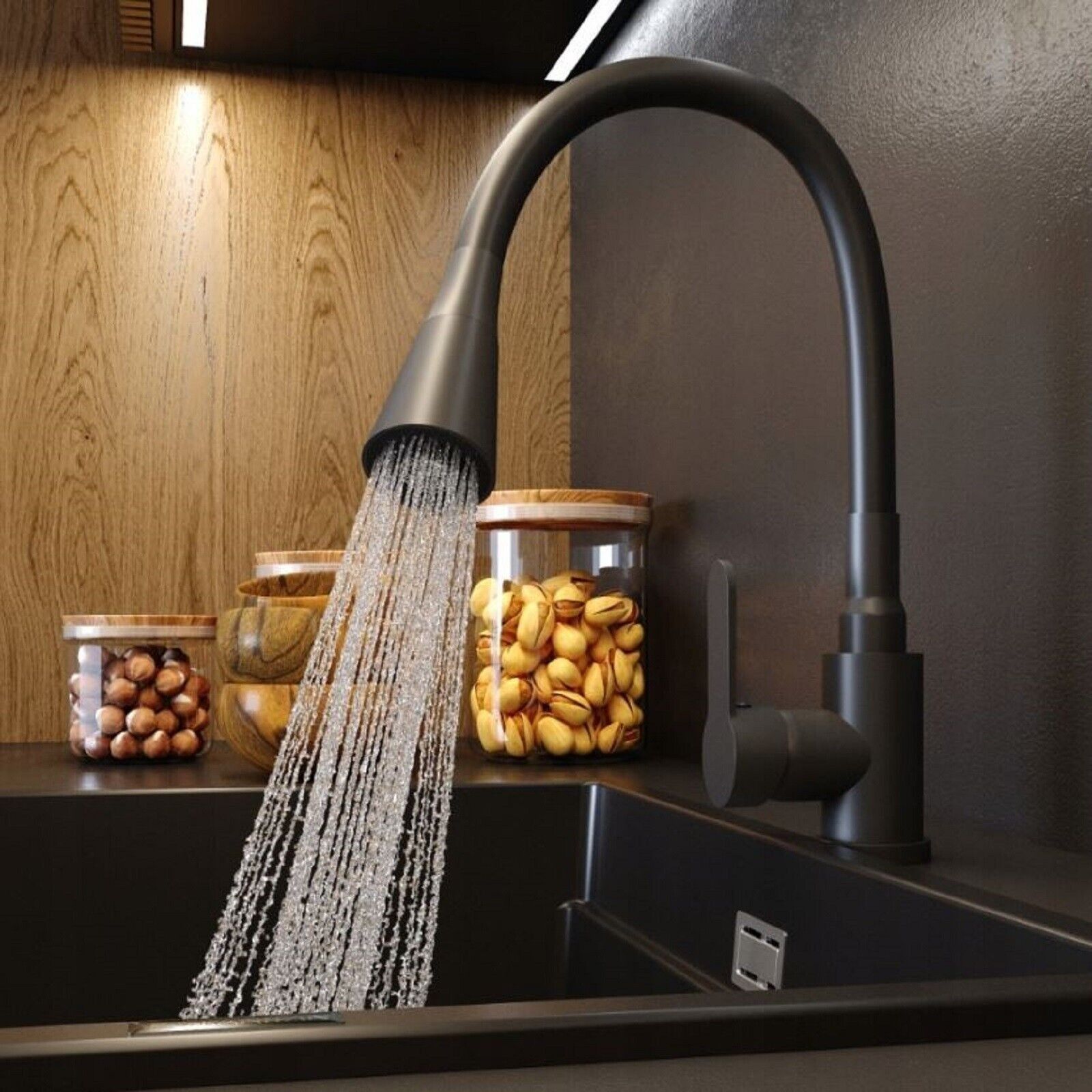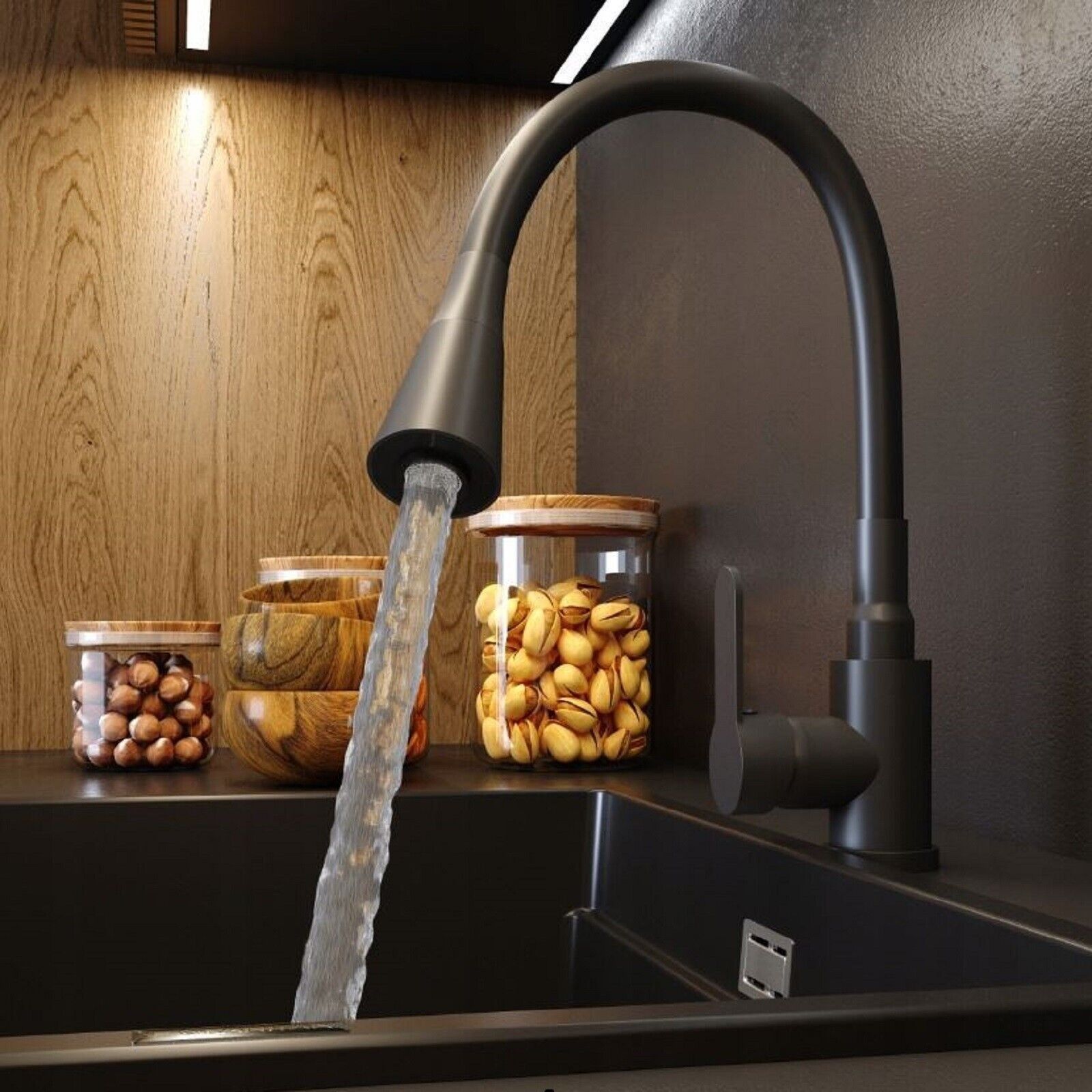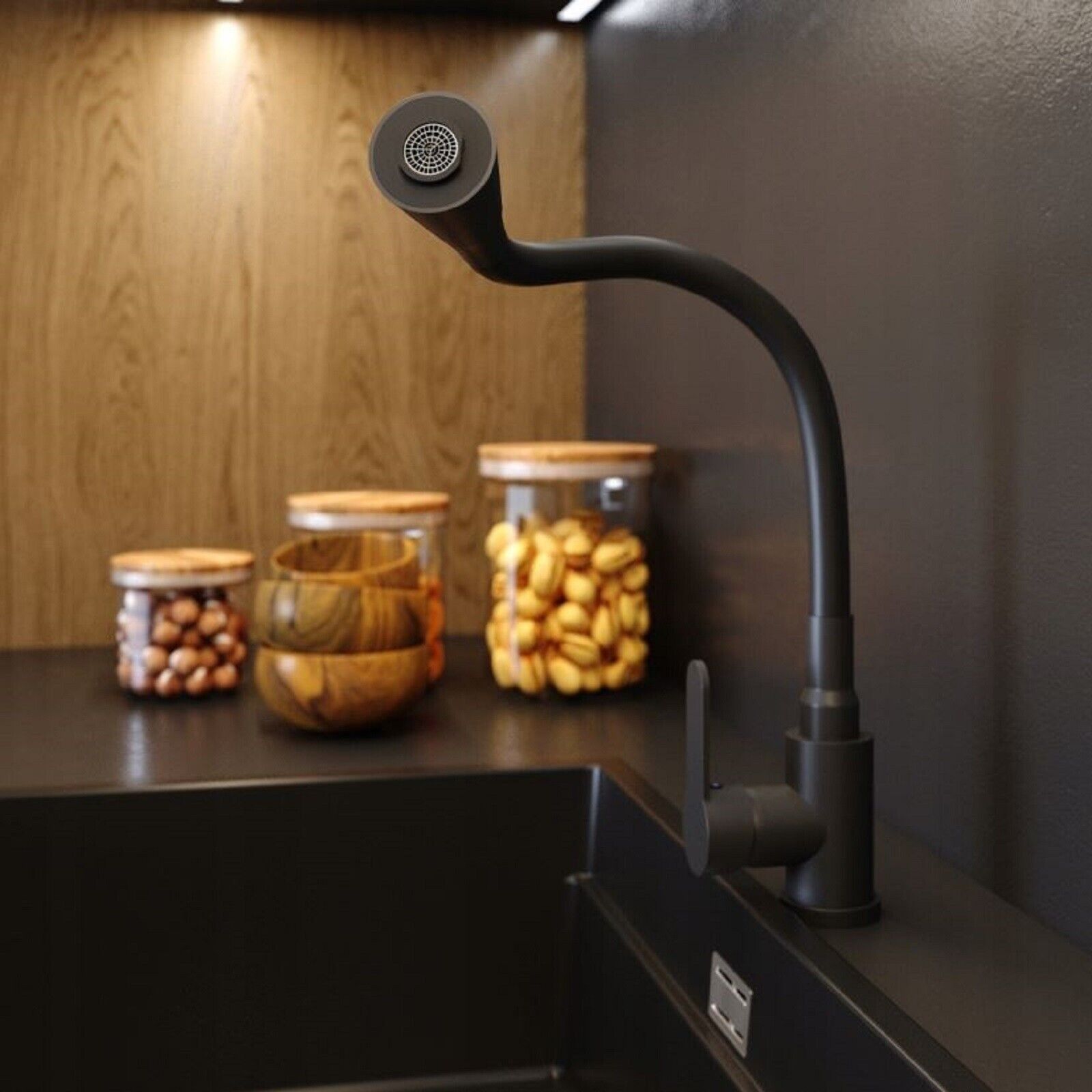 QLS Küchenarmatur Wasserhahn Küche Mischbatterie Flexibel 2 Strahlarten Schwarz 10904
