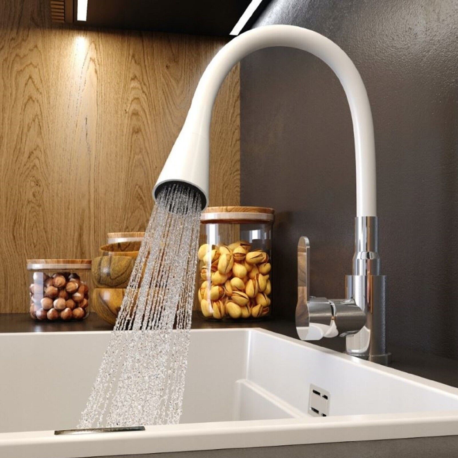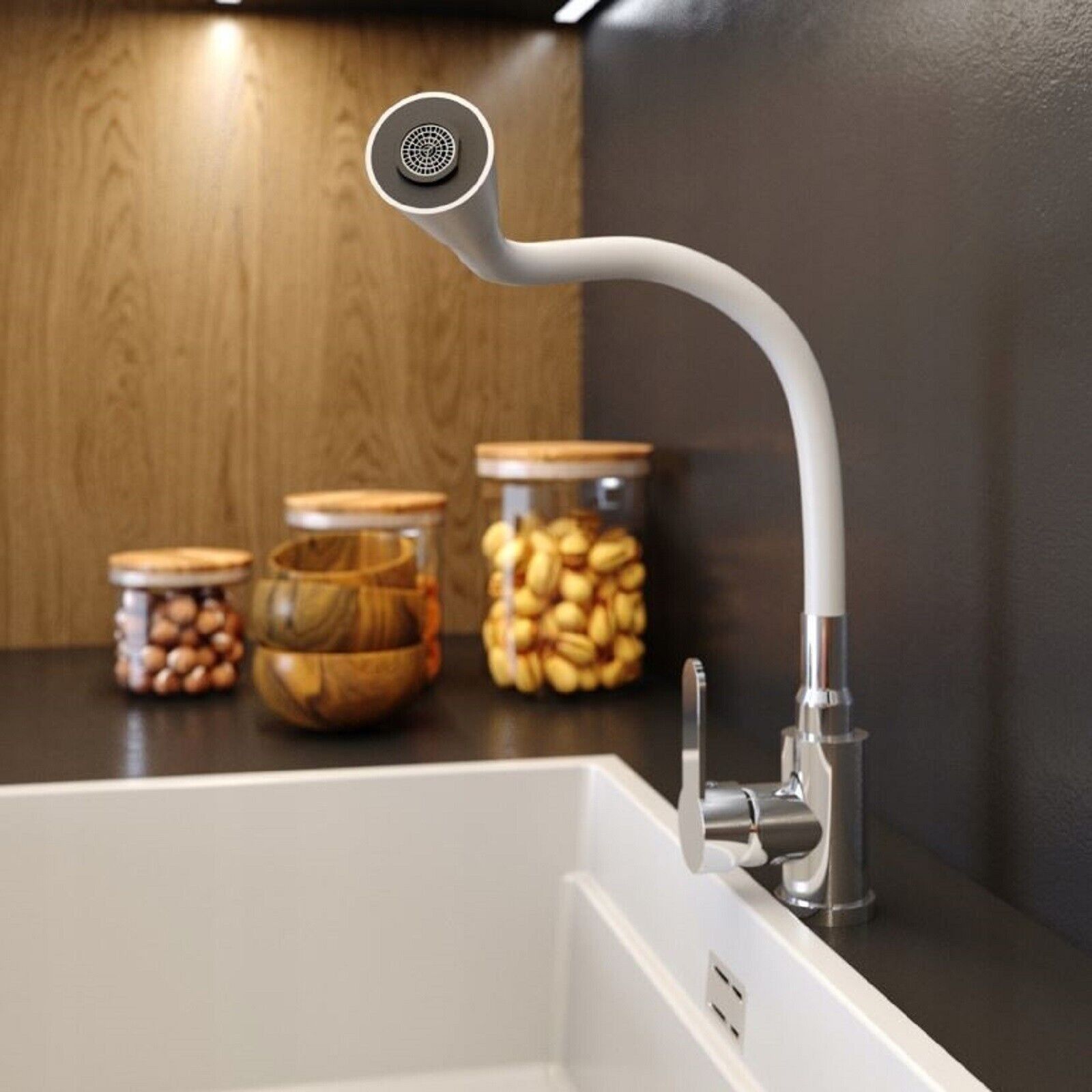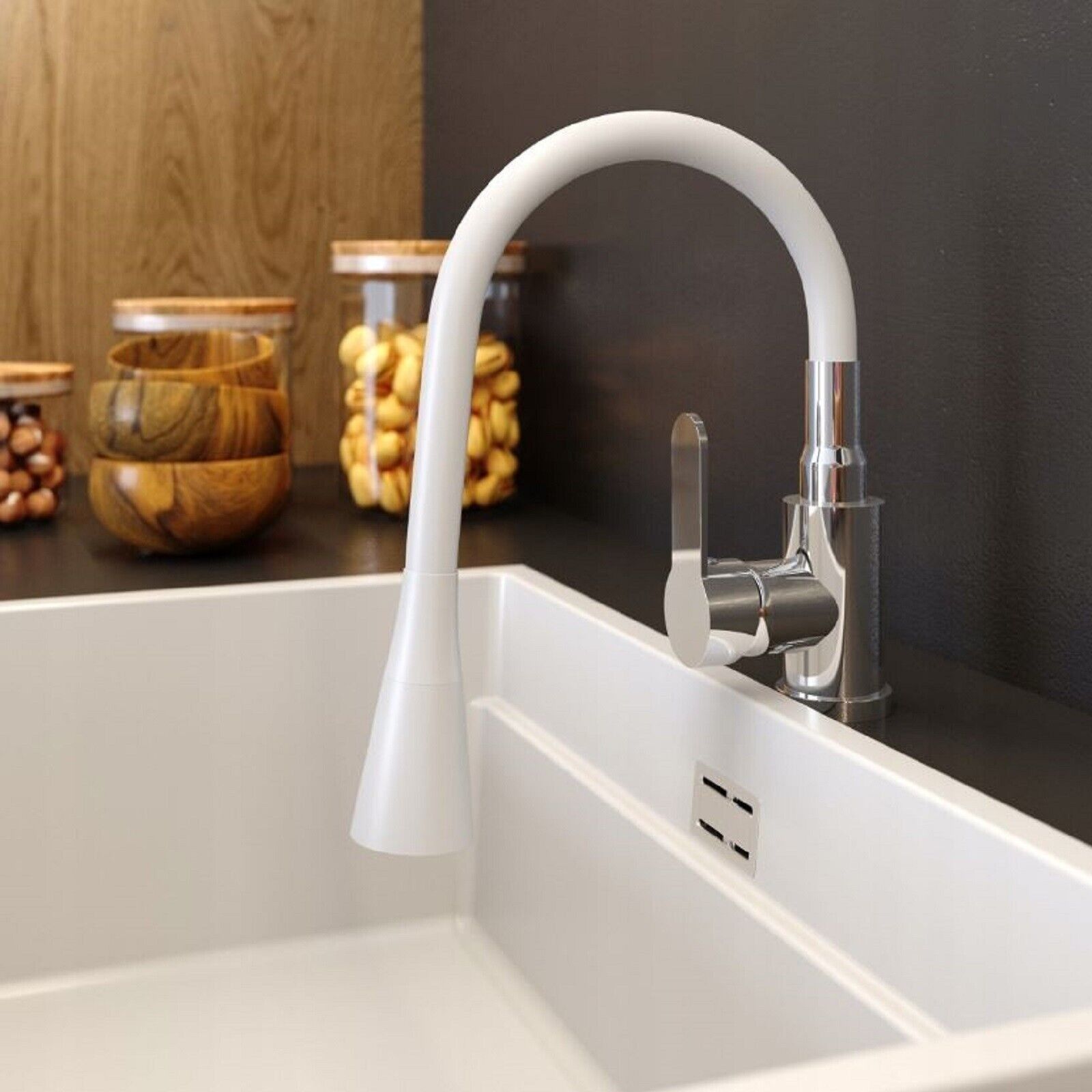 QLS Küchenarmatur Wasserhahn Küche Mischbatterie Flexibel 2 Strahlarten Weiß 10906